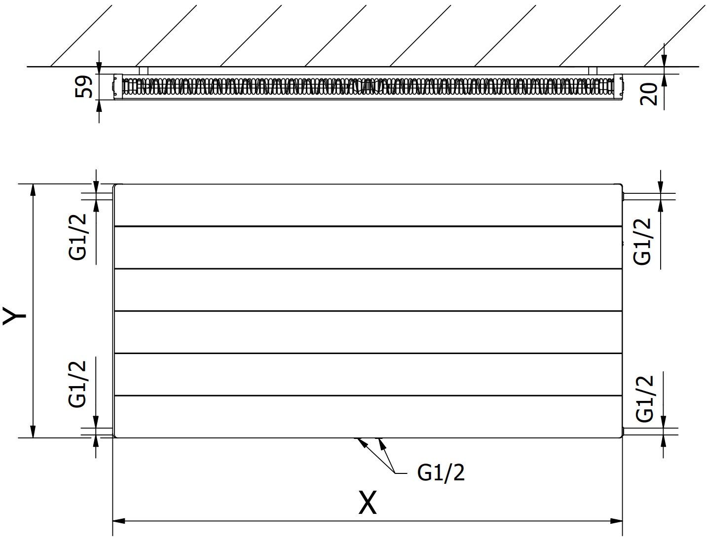 Avstånd mellan vertikala vattenkanaler: 33,3 mm