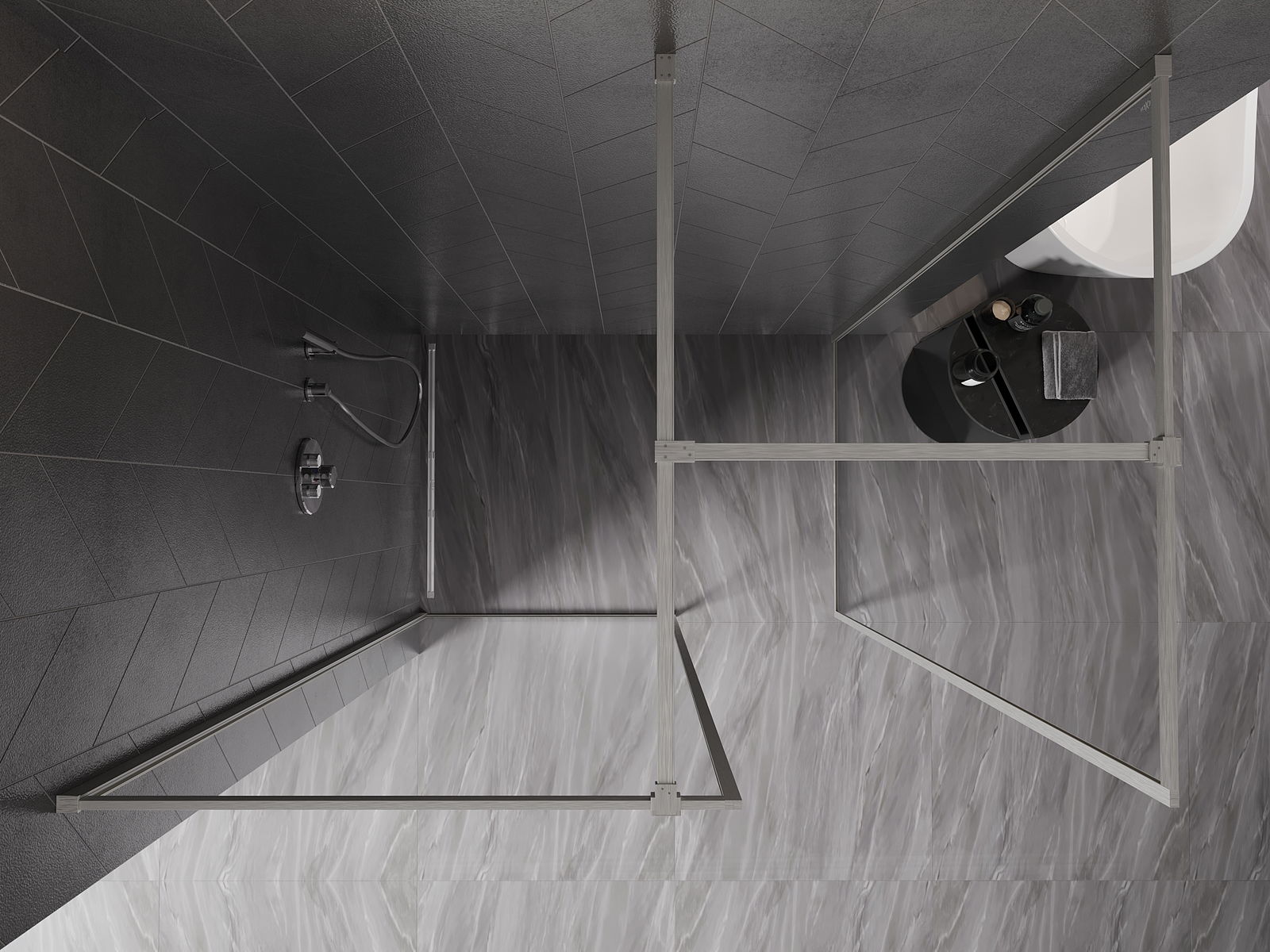 Mexen Kioto-F Walk-in duschvägg med ram 135 x 90 cm, transparent 8 mm, borstad nickel - 800-135-202-04-97-090