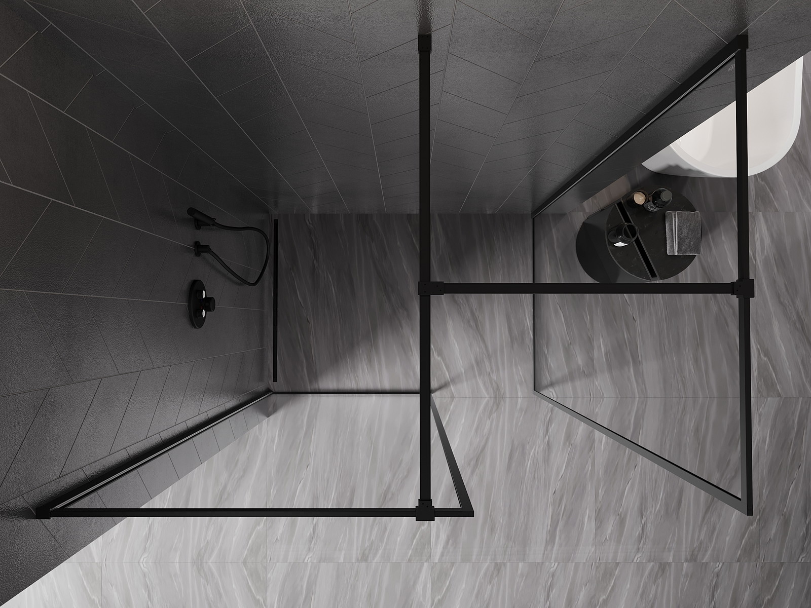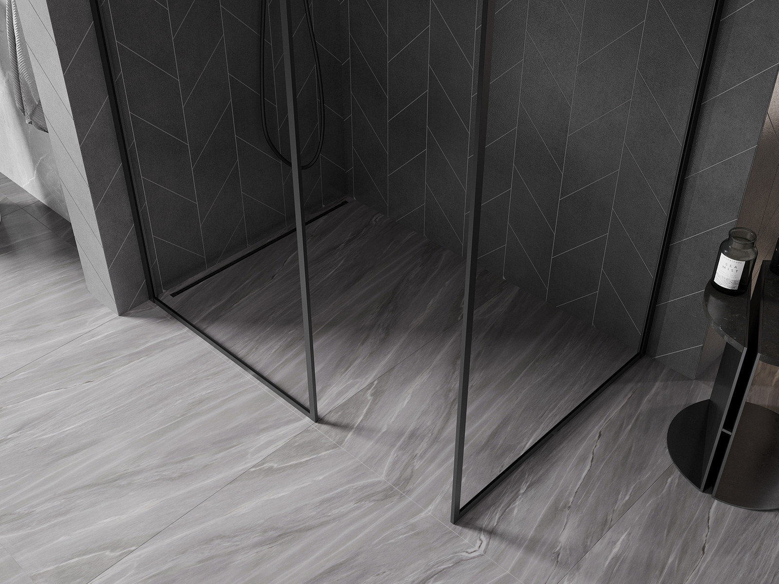 Mexen Kioto-F Duschvägg Walk-in med ram 120 x 70 cm, transparent 8 mm, svart - 800-120-202-04-70-070