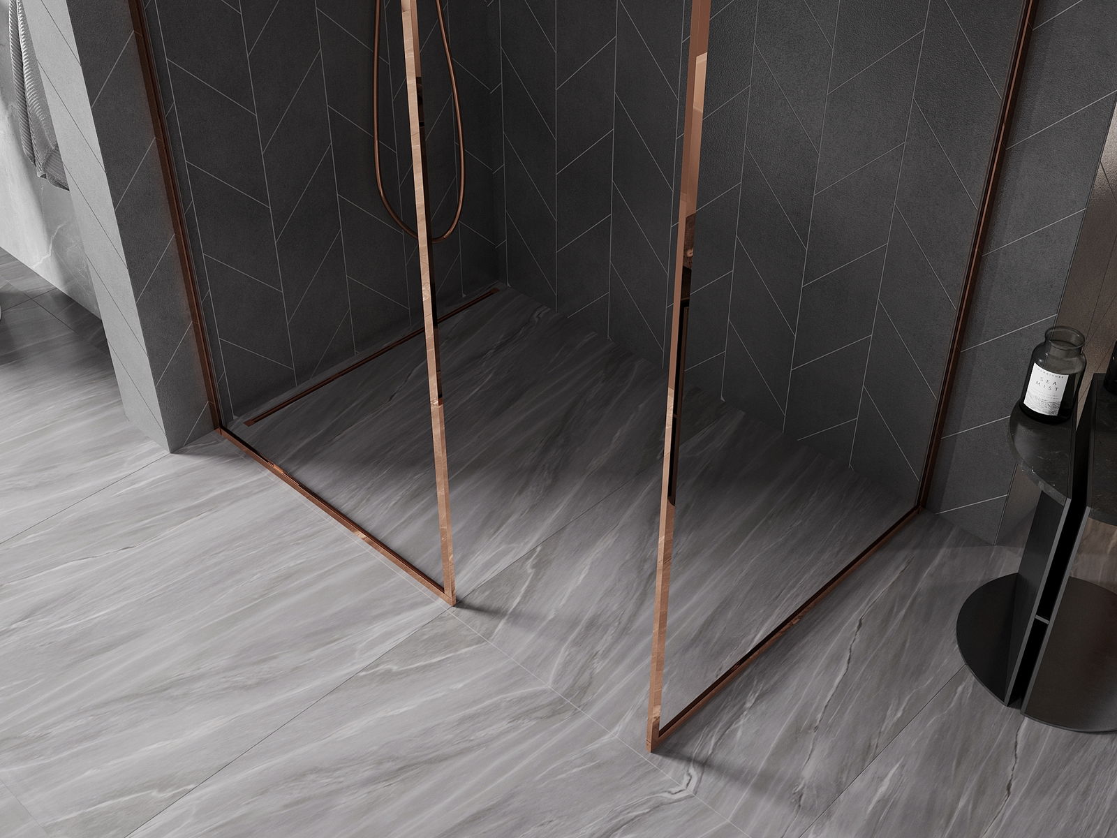 Mexen Kioto-F Duschvägg Walk-in med ram 130 x 90 cm, transparent 8 mm, roséguld - 800-130-202-04-60-090