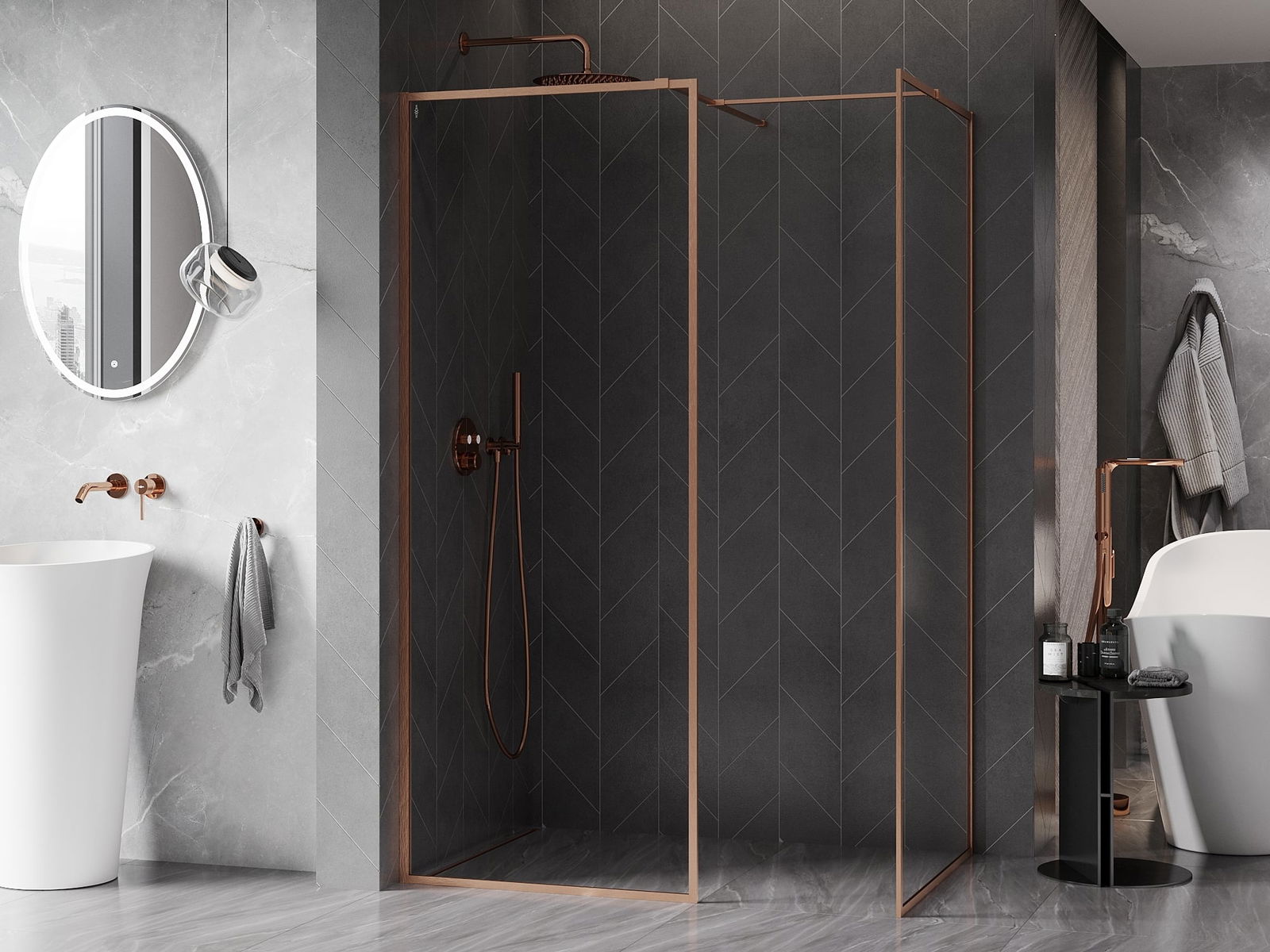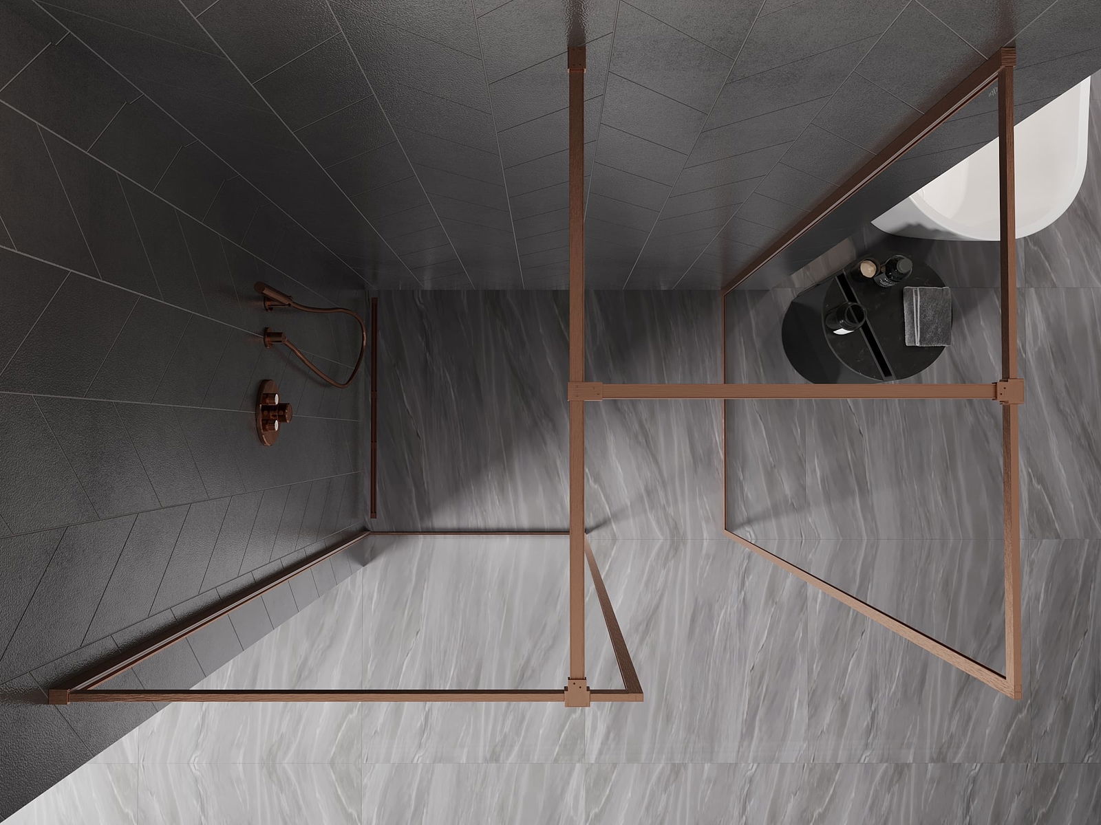 Mexen Kioto-F Duschateljé Walk-in med ram 130 x 95 cm, transparent 8 mm, borstad koppar - 800-130-202-04-65-095