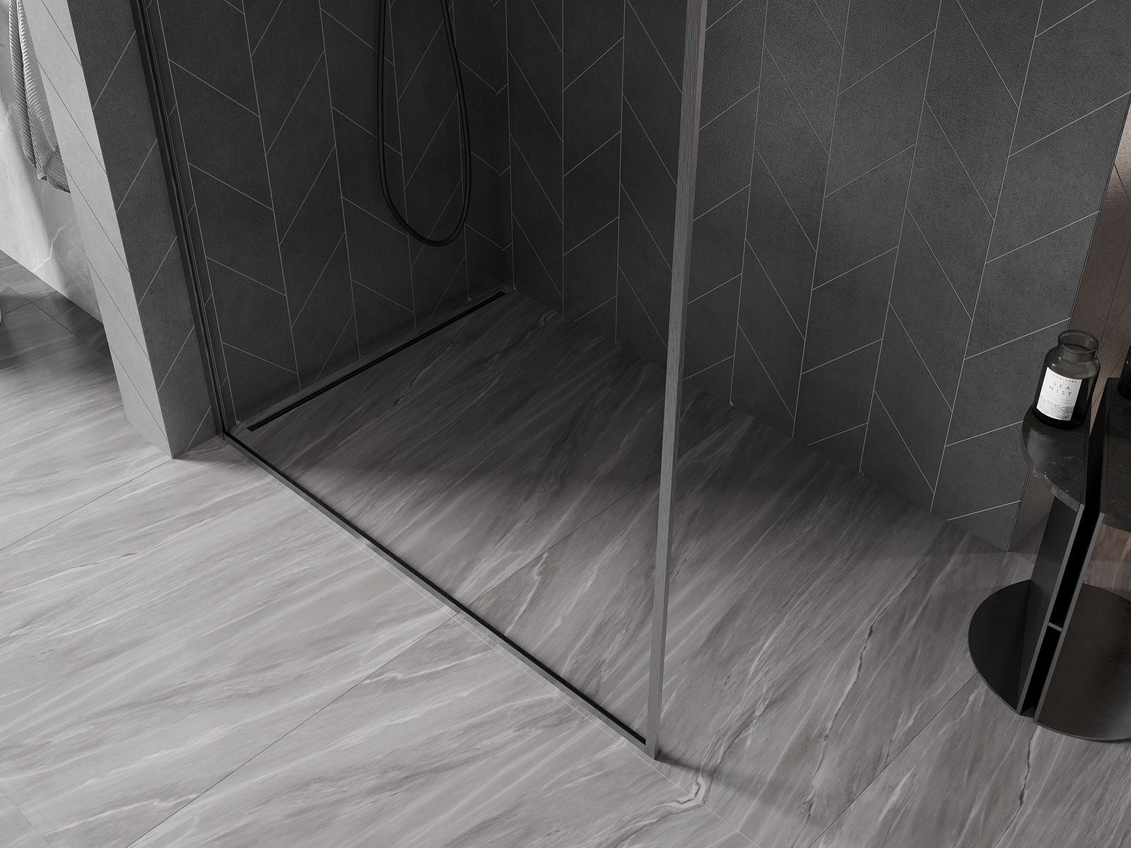 Mexen Kioto-XF duschvägg Walk-in med ram 90 x 202 cm, transparent 10 mm, borstat kanon grå - 800-090-104-66-00-X
