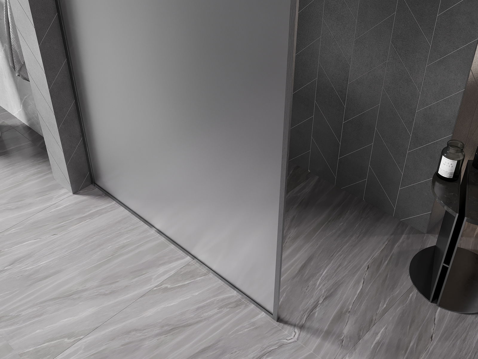 Mexen Kioto-XF Duschvägg Walk-in med ram 130 x 202 cm, frost 10 mm, borstat gevärsgrå - 800-130-104-66-30-X