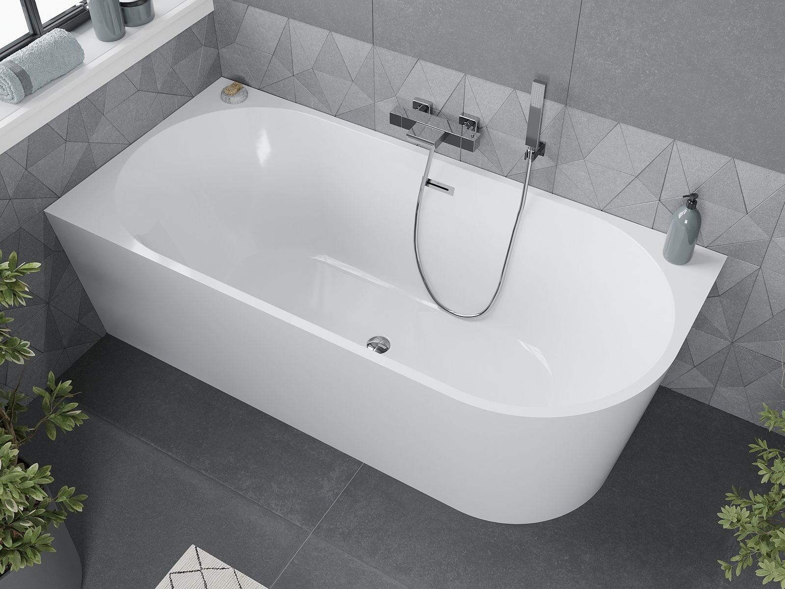 Mexen Mia är ett elegant fristående hörnbadkar med måtten 180 x 80 cm, perfekt för moderna interiörer. Tillverkat av sanitetsakryl, vilket ger hållbarhet och motstånd mot mattning och UV-strålar. Den blanka vita ytan, kromade finishen samt överfyllnadshålet är ytterligare fördelar med denna produkt. Badkaret är avsett för hörnmontering och innehåller sifon och klick-klack-plugg, vilket gör det till ett praktiskt val för alla badrumsprojekt.