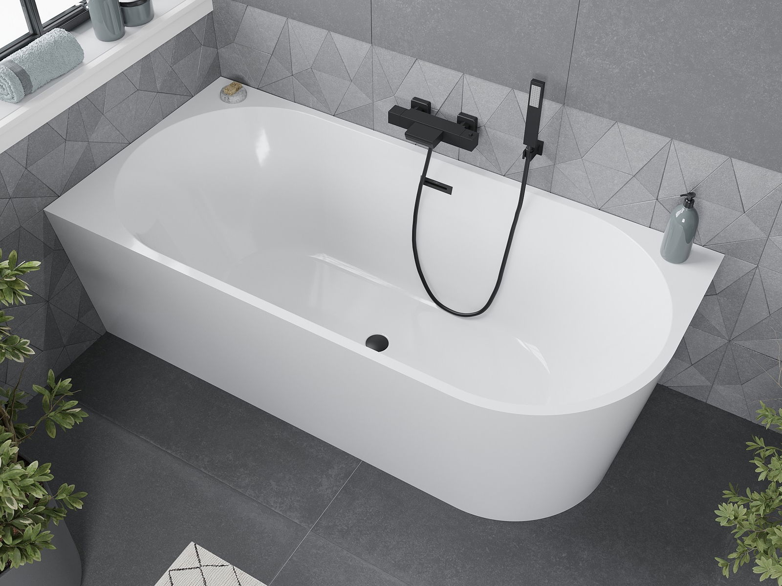 Mexen Mia är ett unikt fristående hörnbadkar med måtten 180 x 80 cm, designat för komfort och modern design. Tillverkat av sanitetsakryl, erbjuder det hållbarhet och motståndskraft mot urblekning och UV-strålning. Dess eleganta vita färg i kombination med svart finish ger badrummet en stilfull accent. Badkaret har ett bräddavloppshål och en elegant bottenventil i svart färg, vilket framhäver dess estetiska utseende. Perfekt för att skapa en modern och funktionell badrumsmiljö.