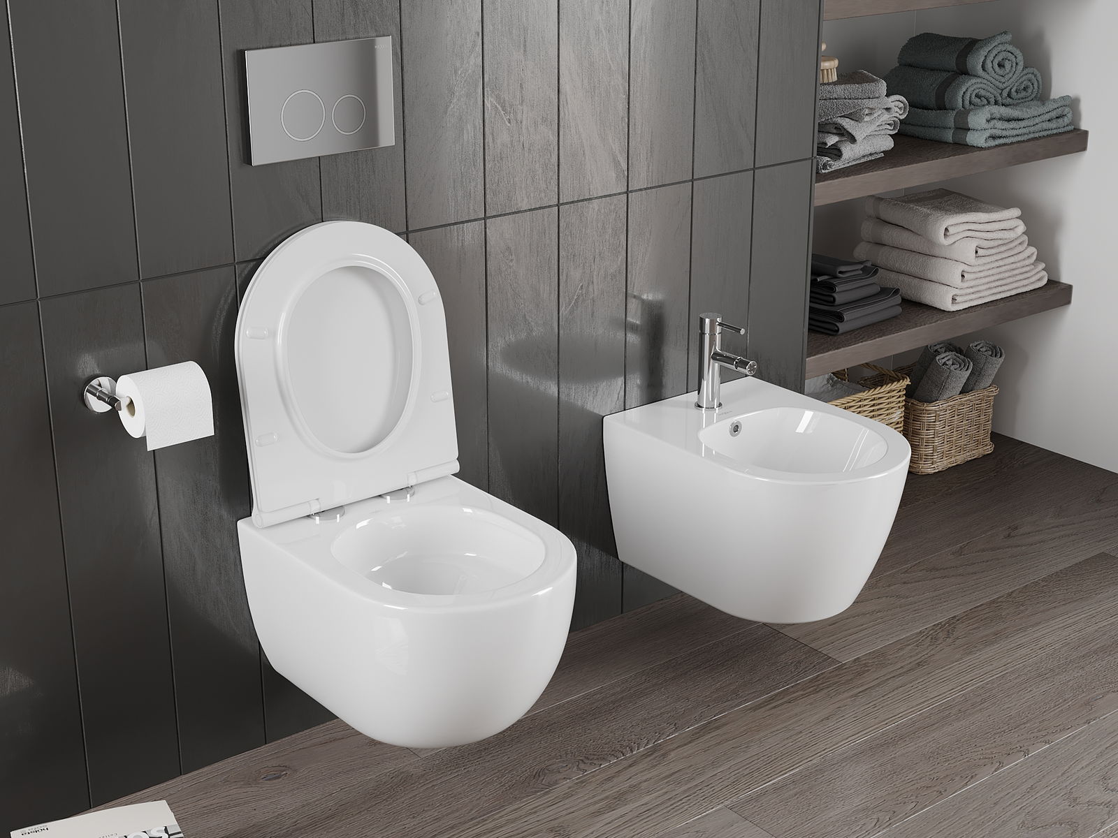 Modernt system där alla monteringselement är dolda. Det är inte bara estetiskt, utan också en mycket praktisk lösning. Det underlättar att hålla badrummet rent och ger badrummet ett prydligt utseende.