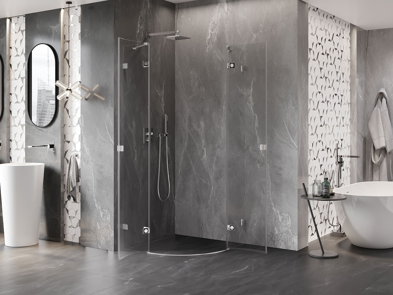 Klammor och gångjärn är gjorda av mycket hållbar mässing och bildar dessutom en inpassad glasruta. Det är ett utmärkt val som kombinerar elegans, hållbarhet och modern design. Tack vare sådana lösningar vinner duschen i estetik och underlättar samtidigt underhåll av renlighet.