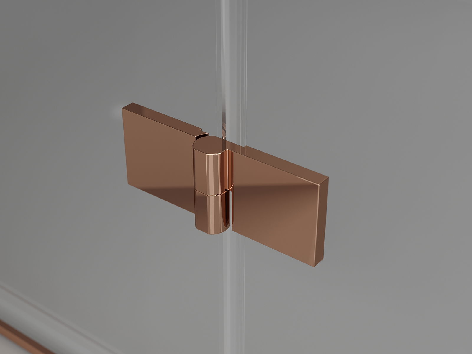 Mässingshandtag och gångjärn i nivå med glasytan