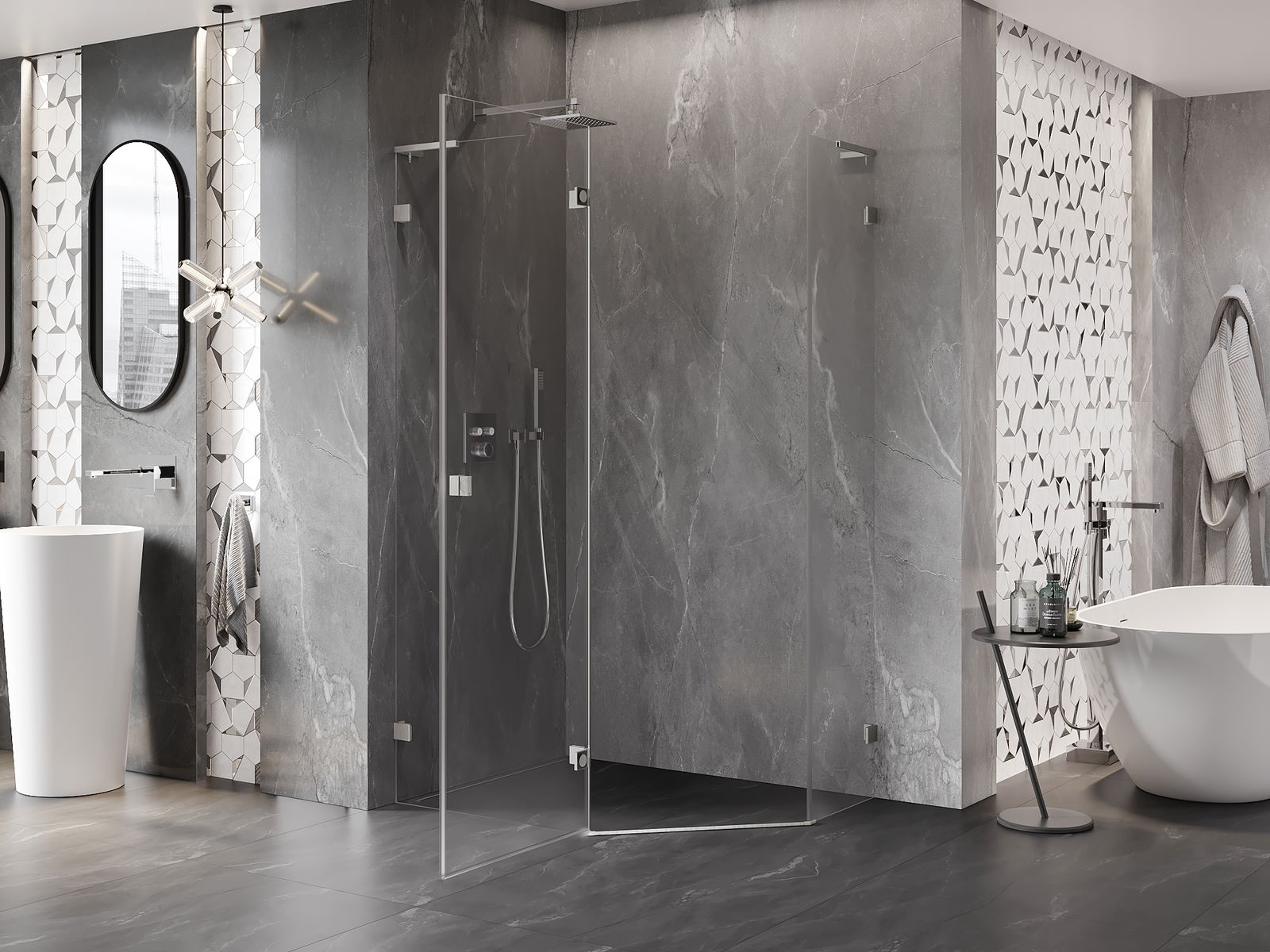 Klammor och gångjärn är gjorda av mycket hållbar mässing och bildar dessutom en inpassad glasruta. Det är ett utmärkt val som kombinerar elegans, hållbarhet och modern design. Tack vare sådana lösningar vinner duschen i estetik och underlättar samtidigt underhåll av renlighet.
