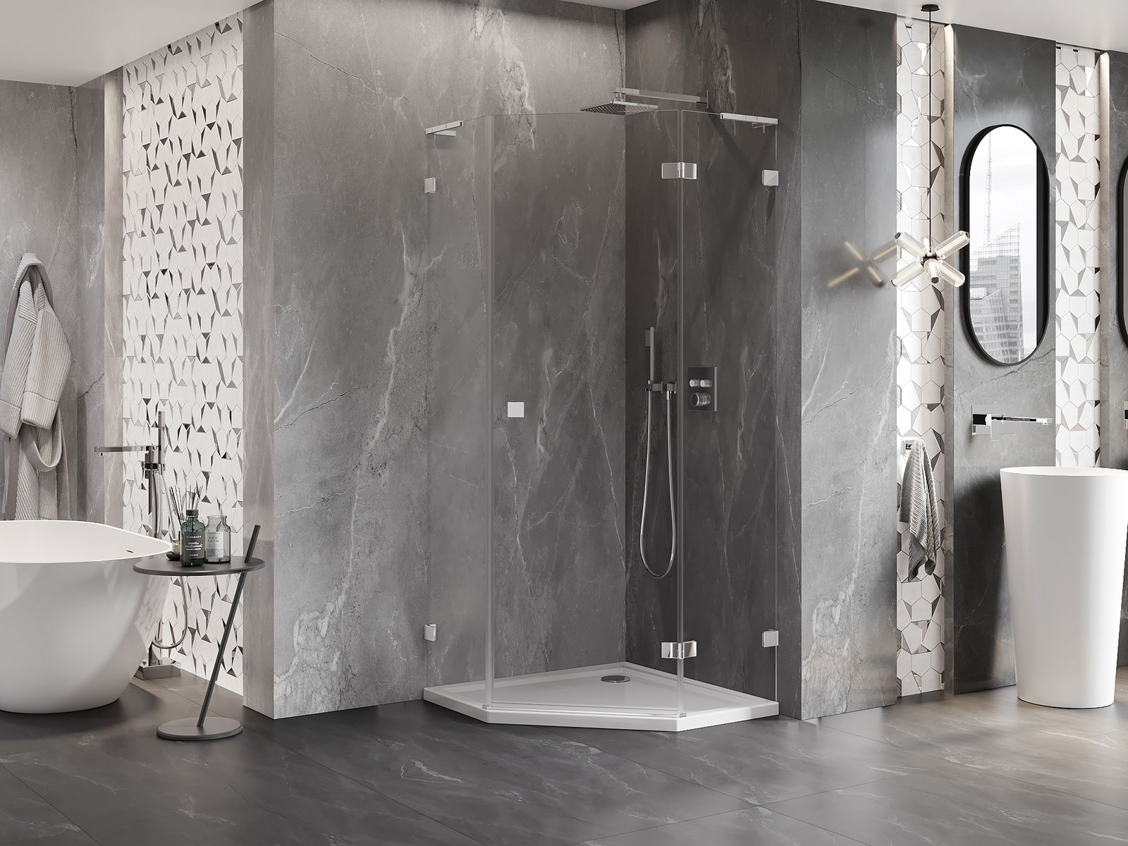 Mexen Lunar L pentagonalt duschkabin med svängdörr höger 100 x 100 cm, transparent, krom - 831L-100P-100L-01-00-P