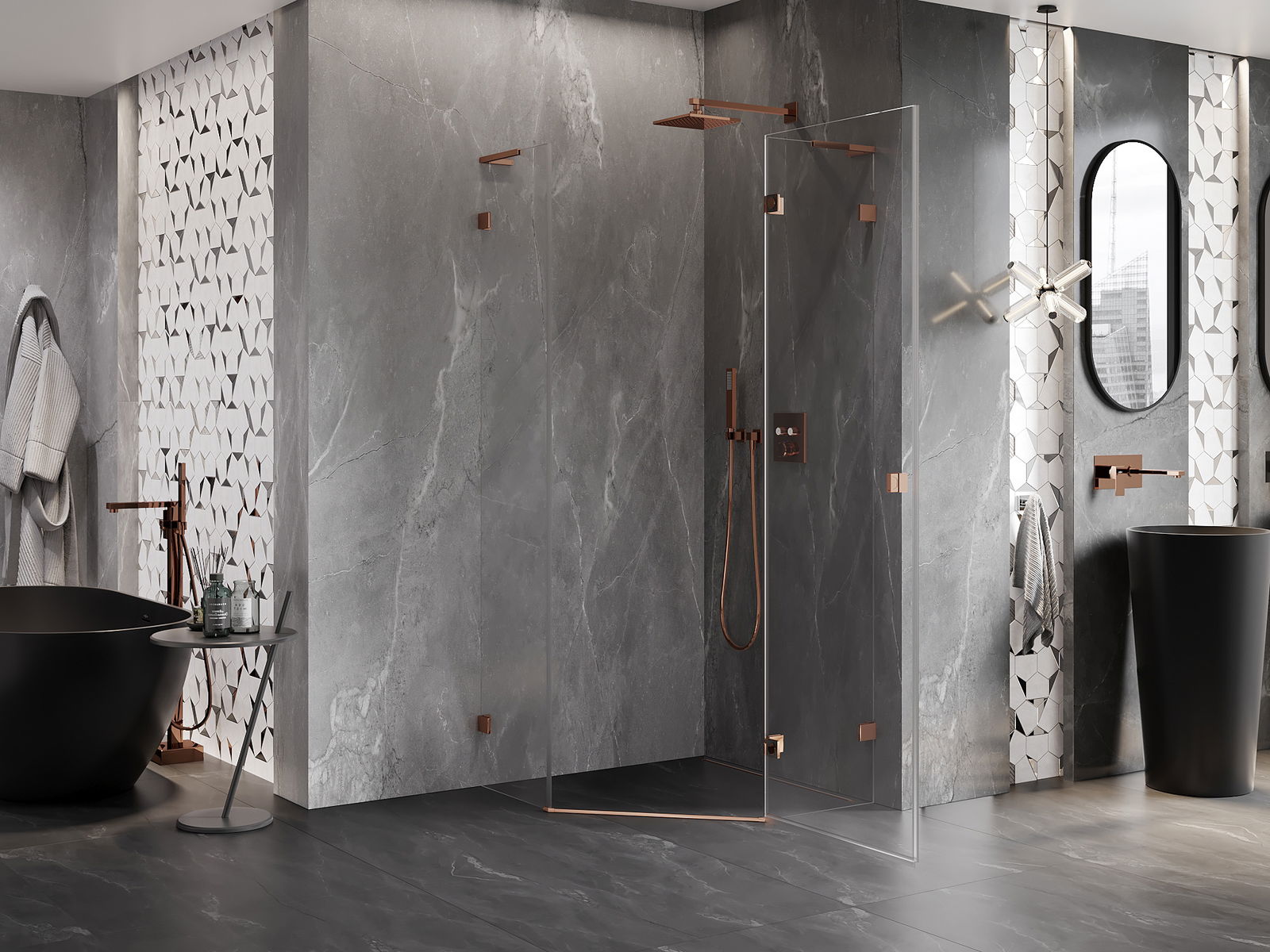 Klammor och gångjärn är gjorda av mycket hållbar mässing och bildar dessutom en inpassad glasruta. Det är ett utmärkt val som kombinerar elegans, hållbarhet och modern design. Tack vare sådana lösningar vinner duschen i estetik och underlättar samtidigt underhåll av renlighet.