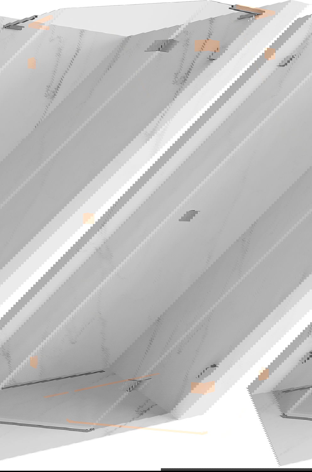 Mexen Lunar L femkantig duschhytt svängbar höger 80 x 80 cm, transparent, borstat koppar - 831L-080P-080L-65-00-P