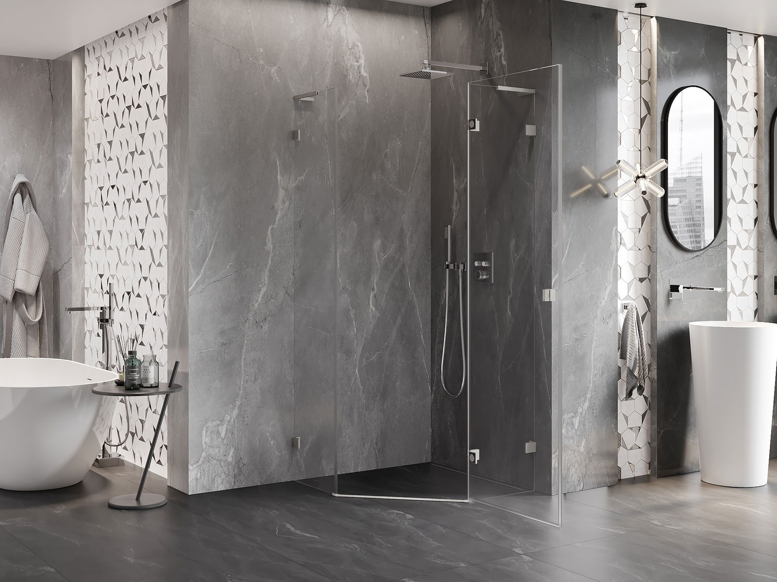 Klammor och gångjärn är gjorda av mycket hållbar mässing och bildar dessutom en inpassad glasruta. Det är ett utmärkt val som kombinerar elegans, hållbarhet och modern design. Tack vare sådana lösningar vinner duschen i estetik och underlättar samtidigt underhåll av renlighet.