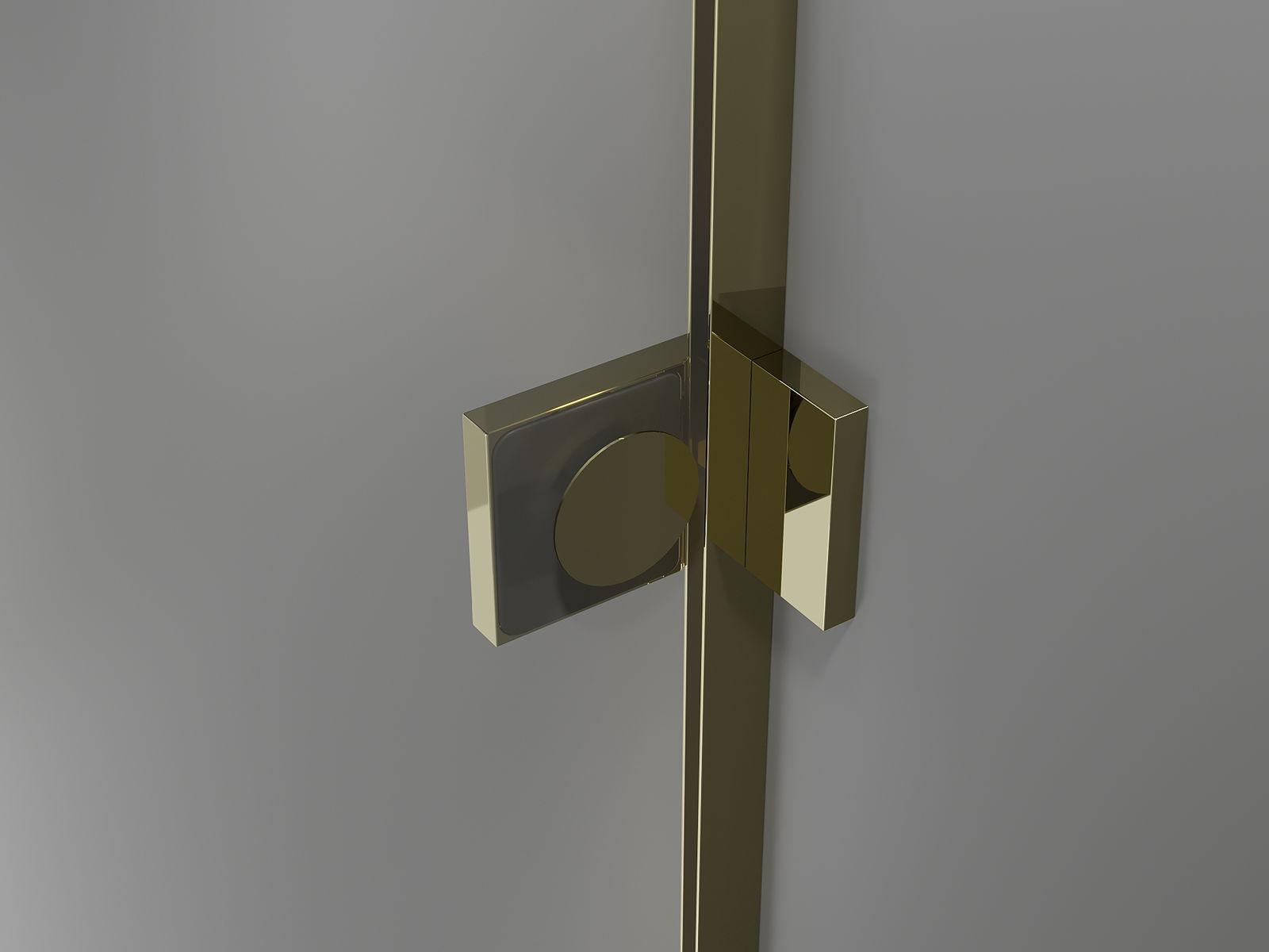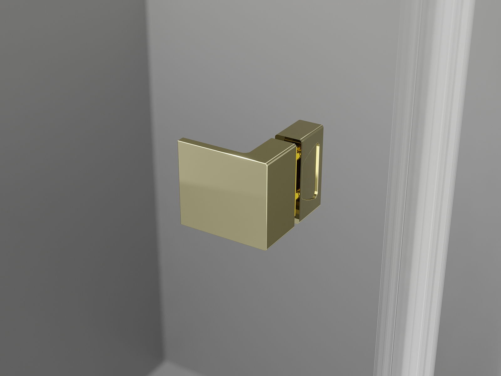 Mässingshandtag och gångjärn som är jämna med glasytan