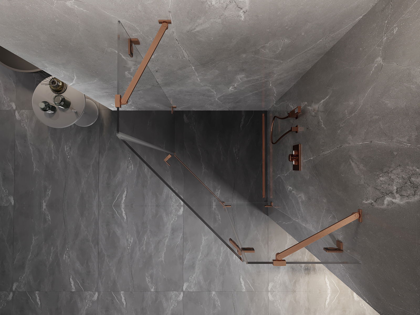 Mexen Lunar femkantig duschkabin, infällbar höger 100 x 100 cm, transparent, borstad koppar - 831-100P-100L-65-00-P