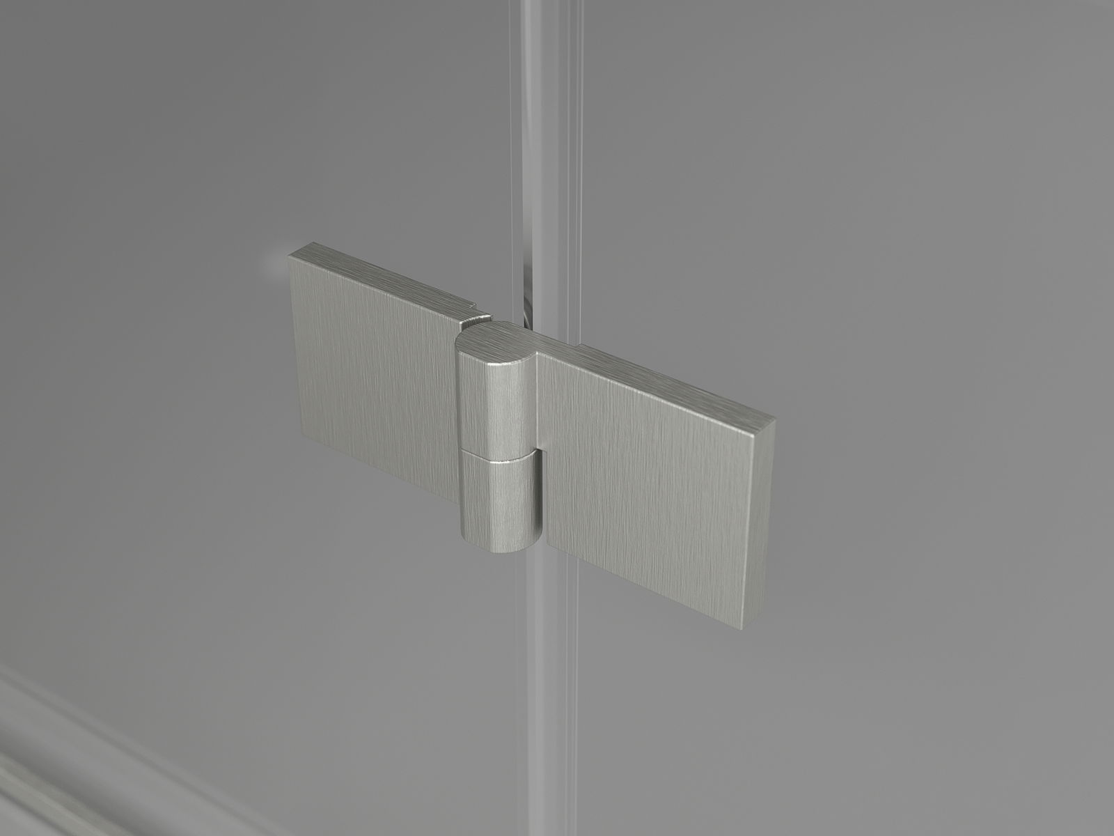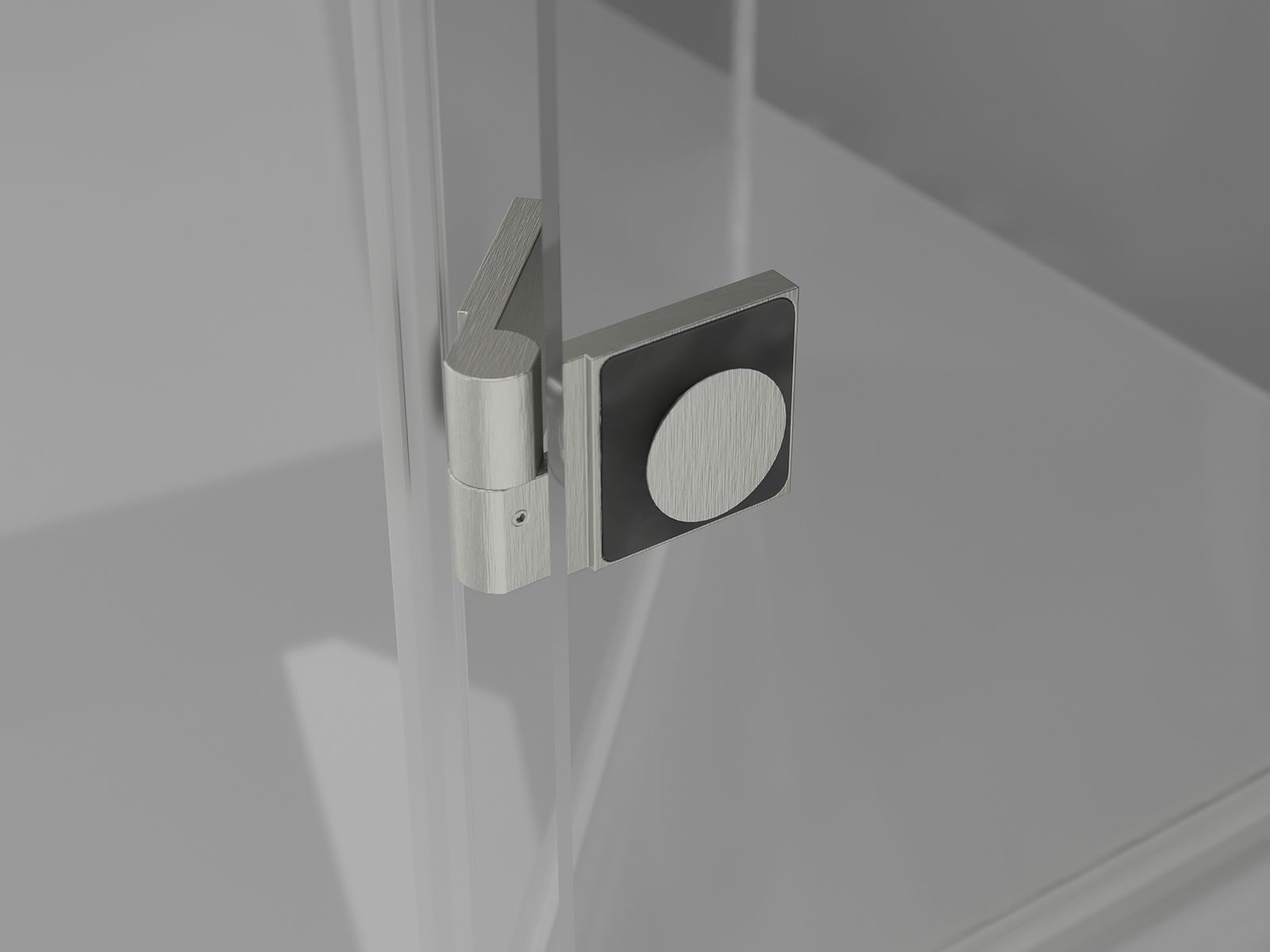 Mässingshandtag och gångjärn i nivå med glasytan