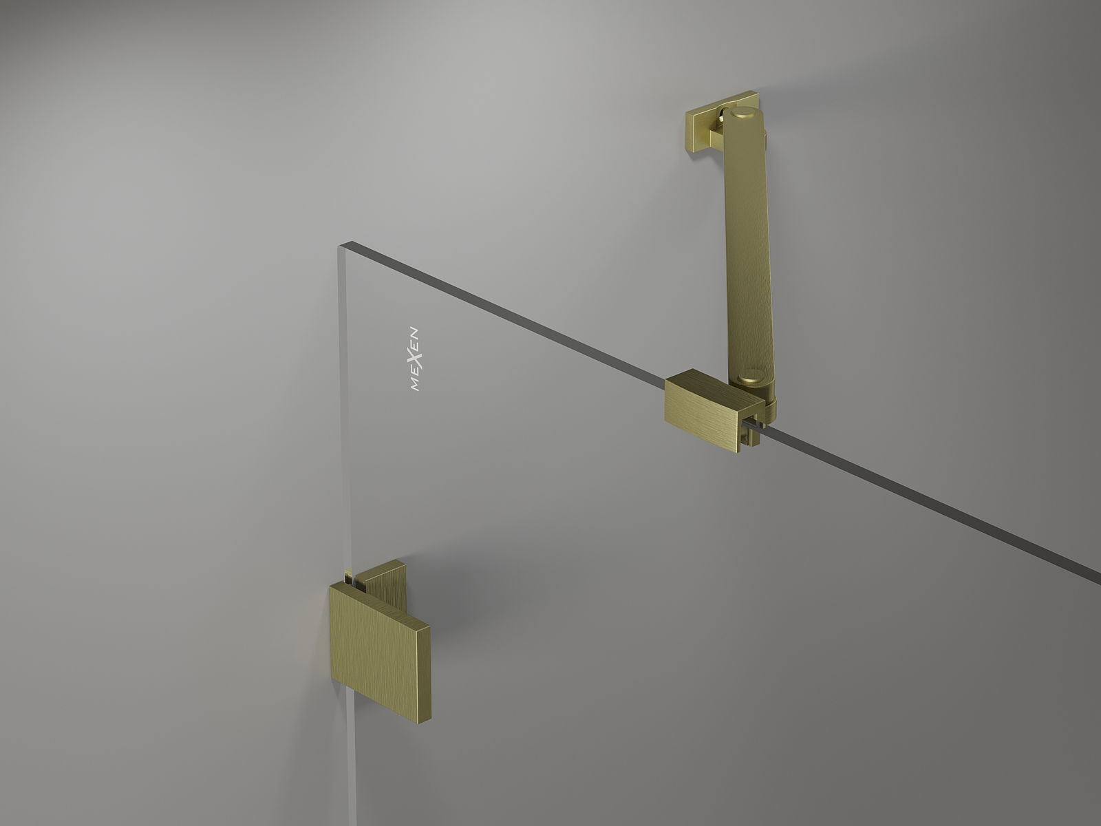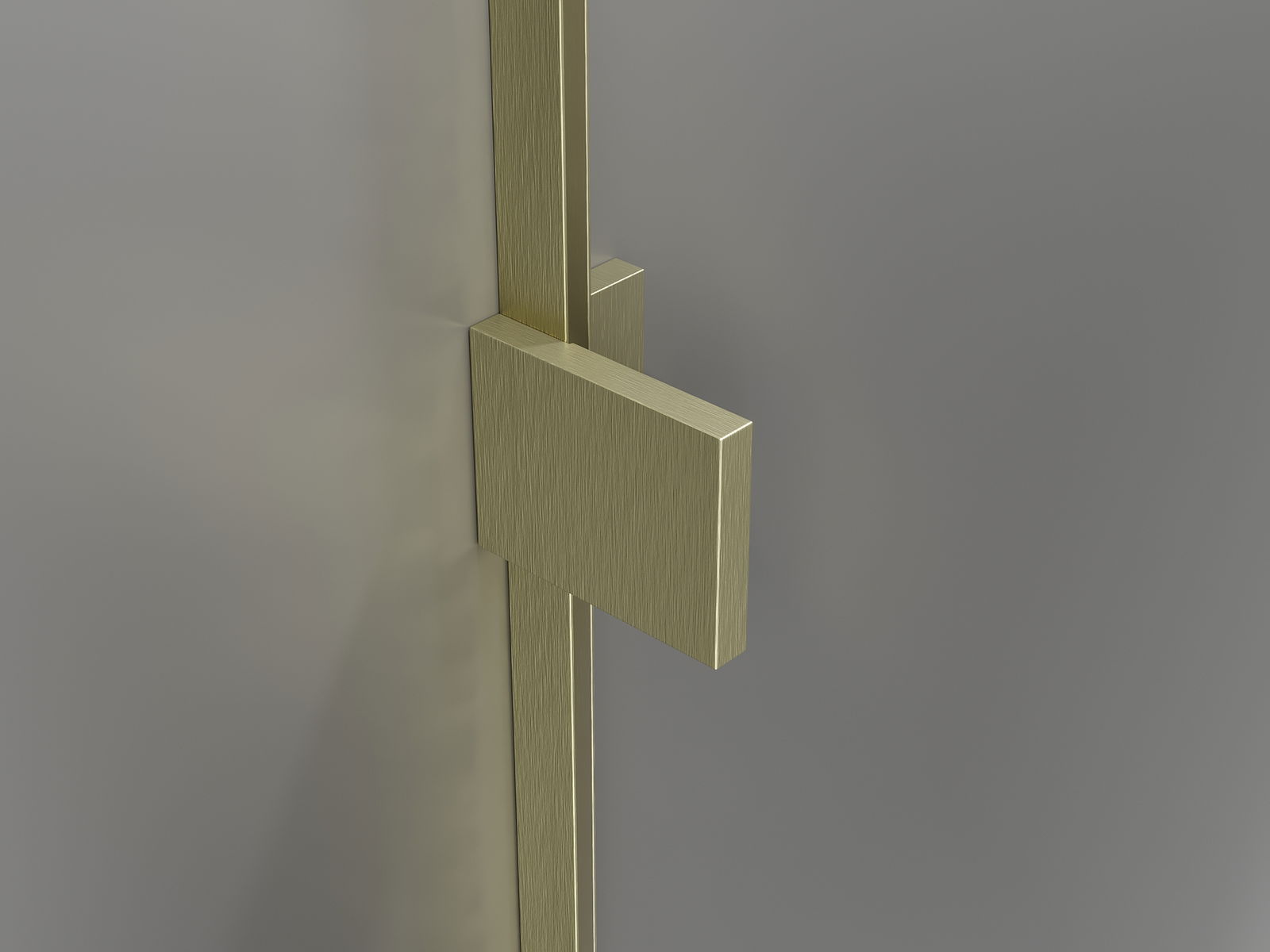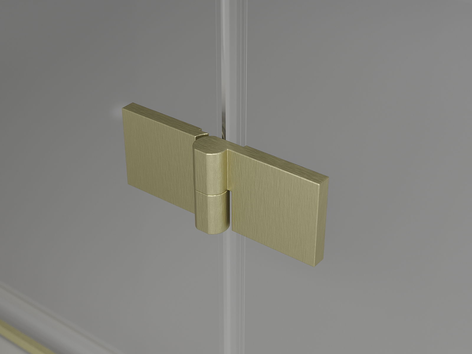 Mässingshandtag och gångjärn i nivå med glasytan