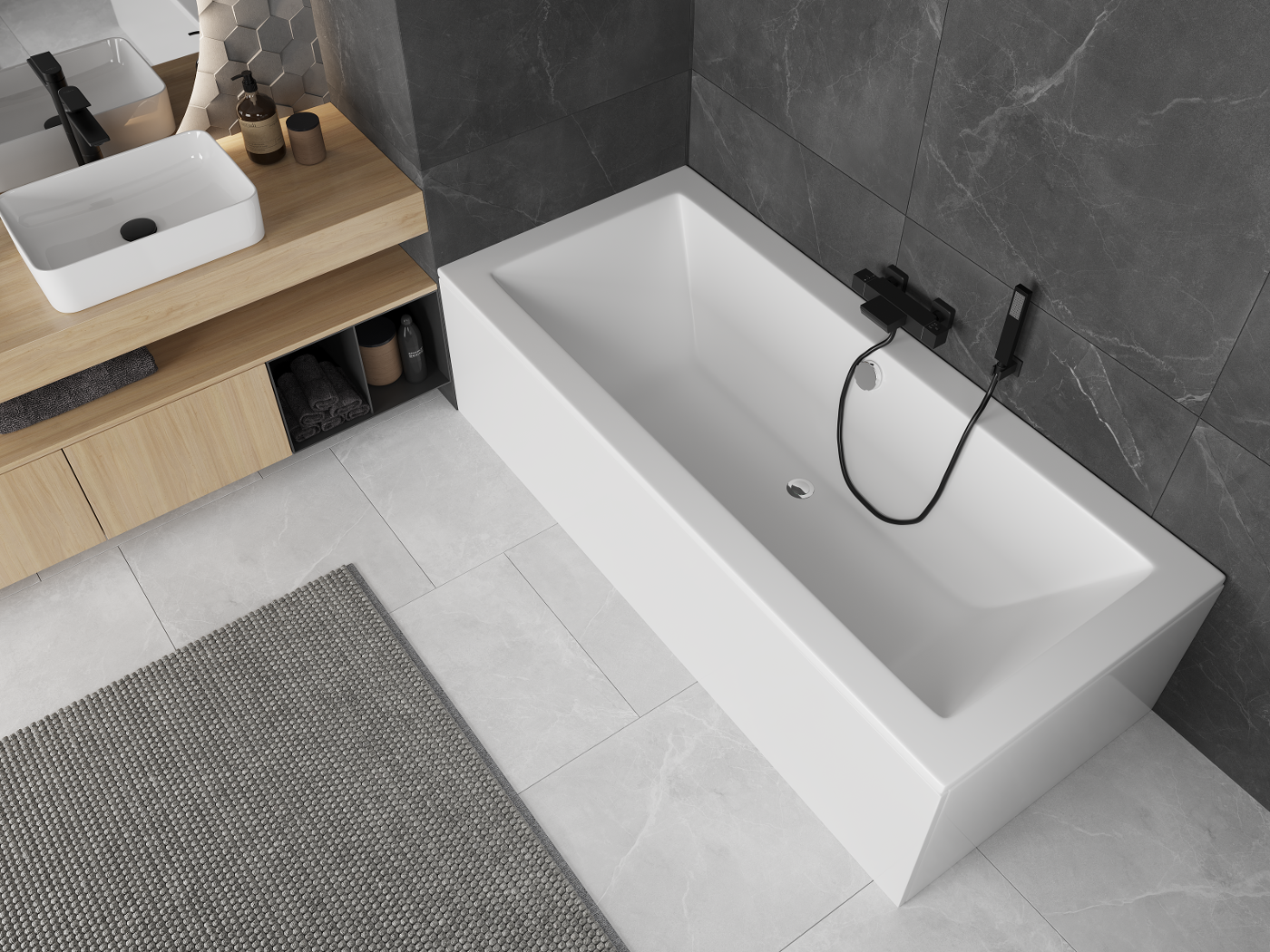 Användningen av akryl i badrummet är en mycket praktisk lösning. Akryl håller vattentemperaturen väl, vilket förhindrar att vattnet svalnar snabbt. Det har också akustiska egenskaper, vilket minskar buller i badrummet.