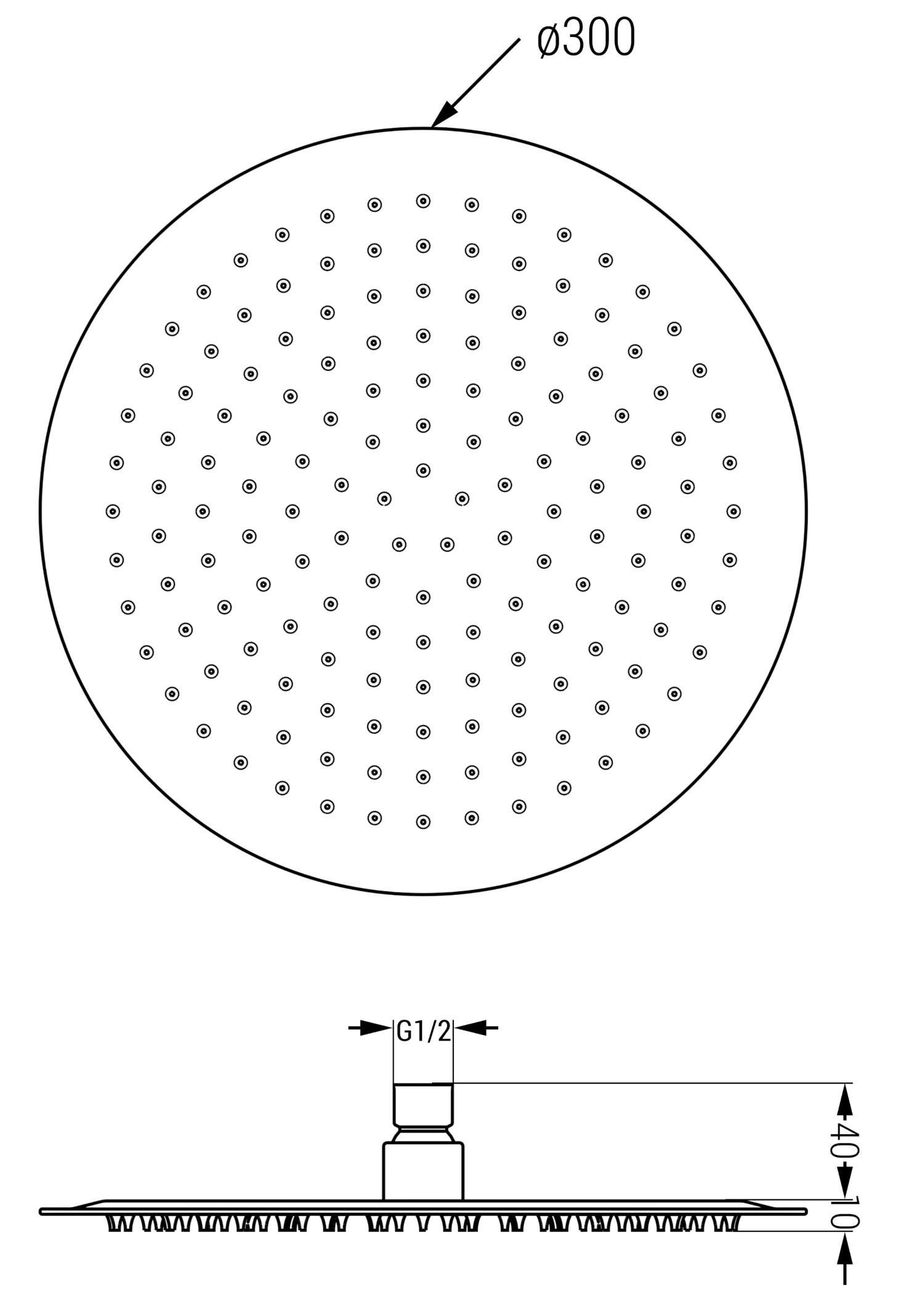 Standardström av vatten som imiterar naturligt regn. Dropparna flyter jämnt över kroppen, omsluter det med en behaglig känsla av återfuktning och låter dig sjunka in i en avslappnande och lugnande sinnesupplevelse under den dagliga duschen.