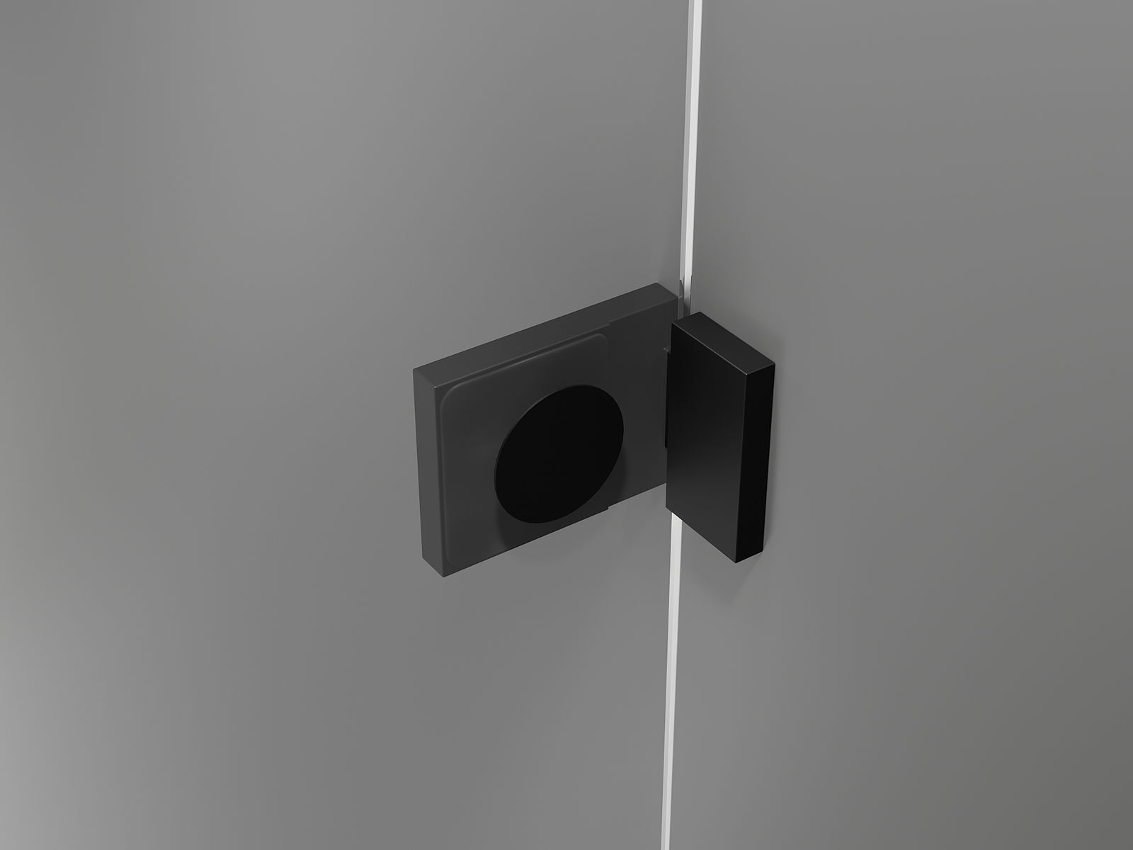 Mässingshandtag och gångjärn i nivå med glasytan