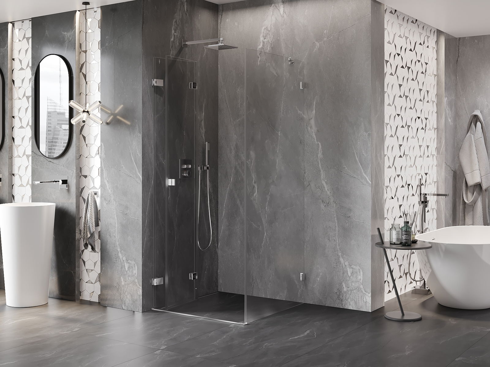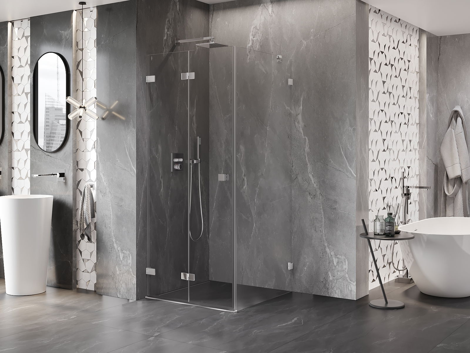 Klammor och gångjärn är gjorda av mycket hållbar mässing och bildar dessutom en inpassad glasruta. Det är ett utmärkt val som kombinerar elegans, hållbarhet och modern design. Tack vare sådana lösningar vinner duschen i estetik och underlättar samtidigt underhåll av renlighet.