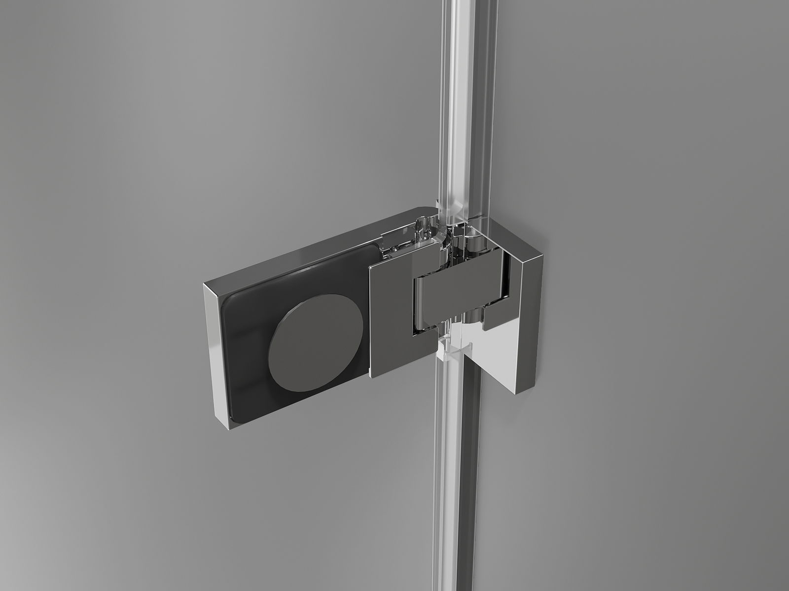 Mässingsklämmor och gångjärn i linje med glaspanelen