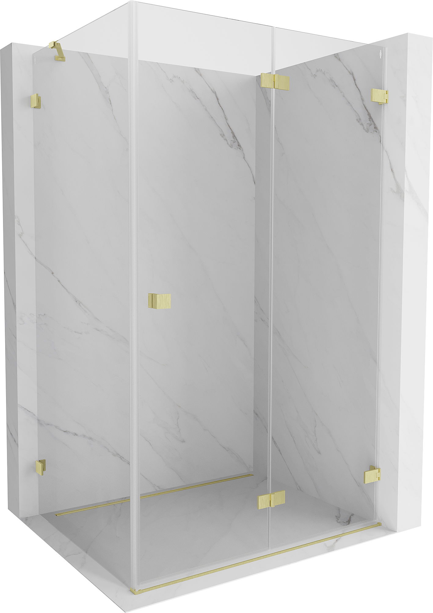 Mexen Lunar-F vikbar duschkabin höger 80 x 70 cm, transparent, borstad guld - 836-080-070-55-00-P