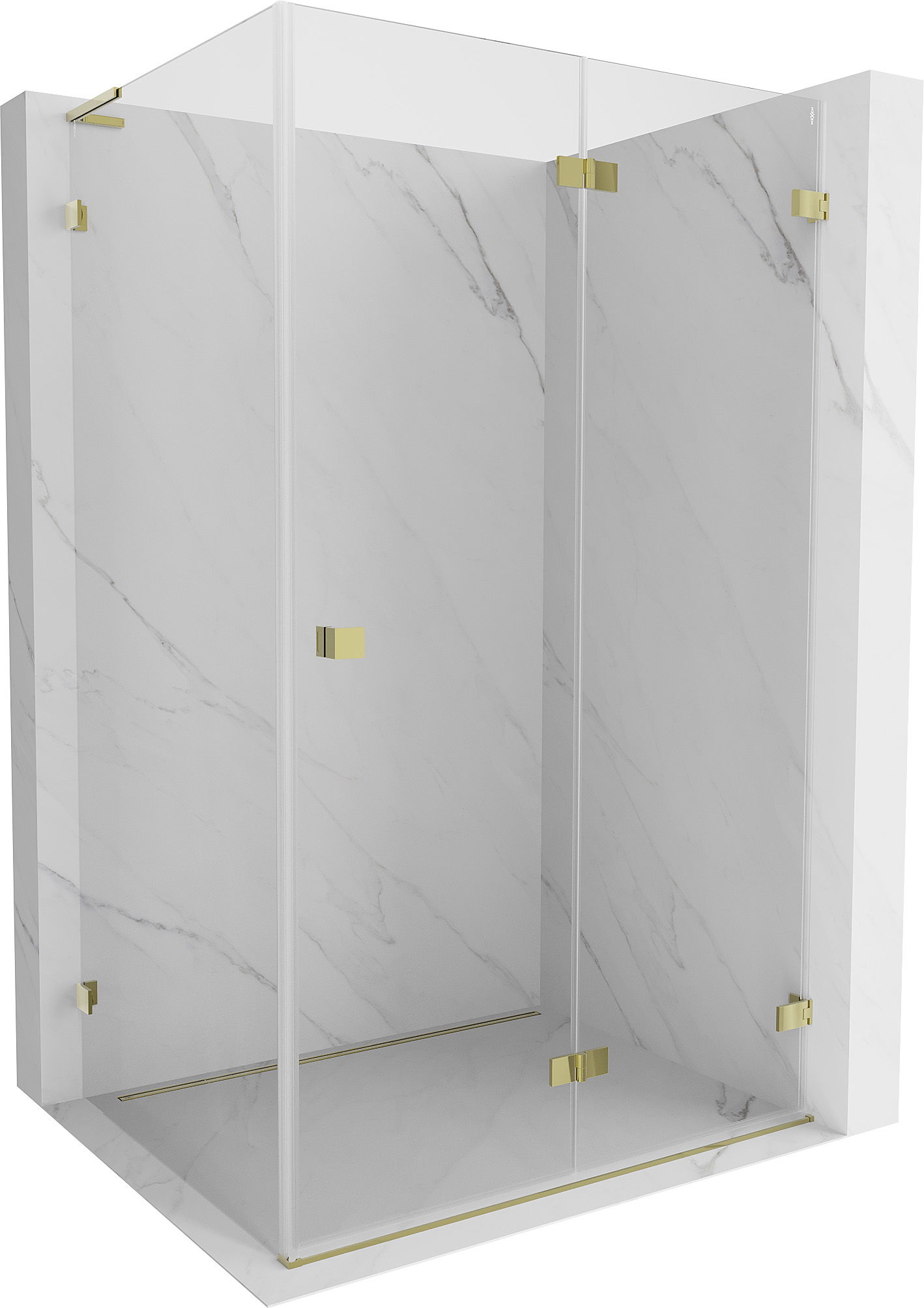 Mexen Lunar-F L vikbar duschkabin höger 100 x 70 cm, transparent, guld - 836L-100-070-50-00-P
