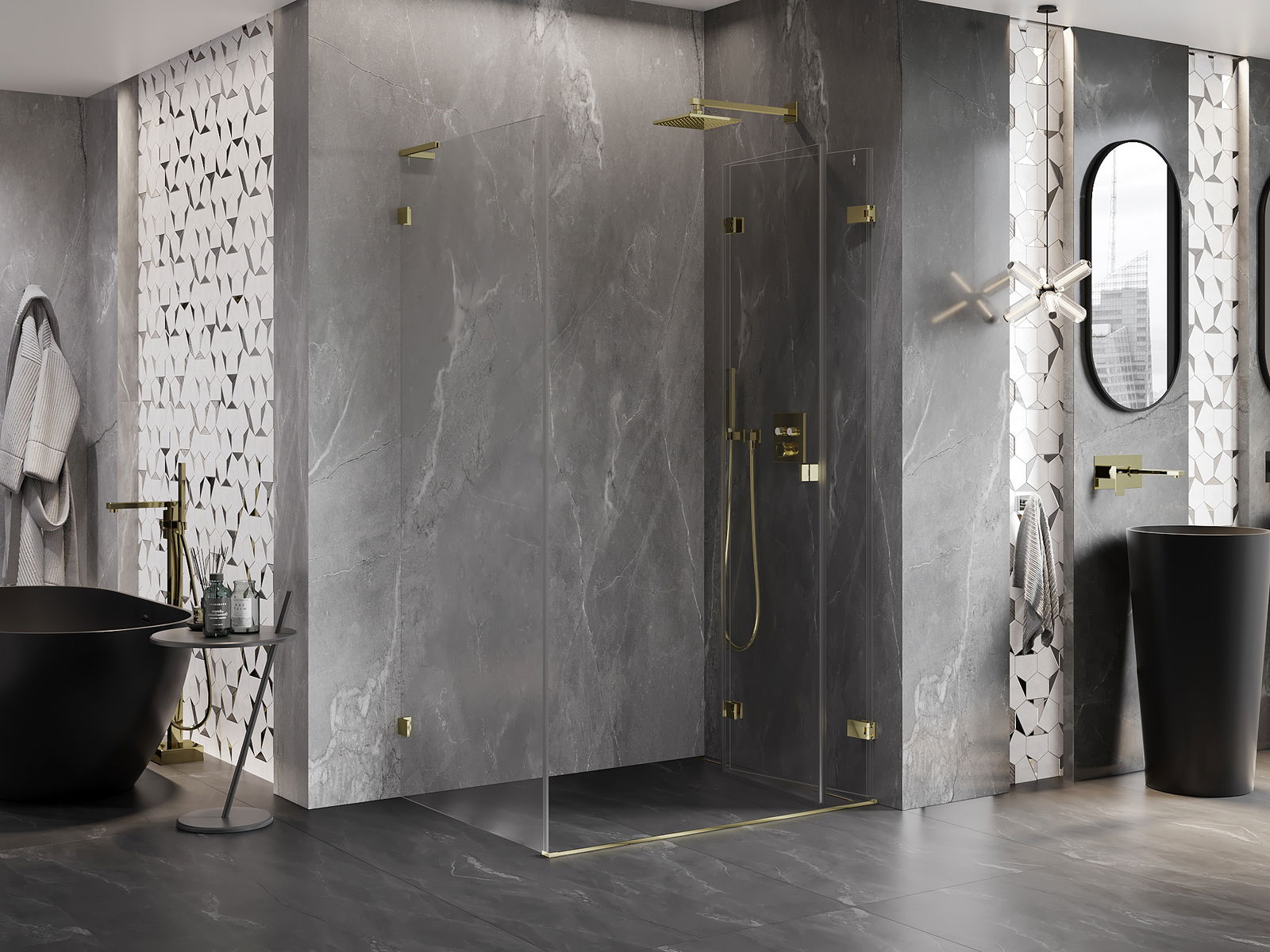 Klammor och gångjärn är gjorda av mycket hållbar mässing och bildar dessutom en inpassad glasruta. Det är ett utmärkt val som kombinerar elegans, hållbarhet och modern design. Tack vare sådana lösningar vinner duschen i estetik och underlättar samtidigt underhåll av renlighet.