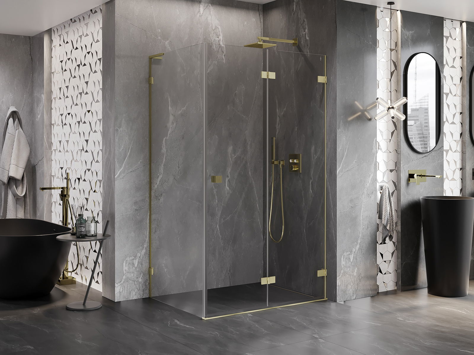Klammor och gångjärn är gjorda av mycket hållbar mässing och bildar dessutom en inpassad glasruta. Det är ett utmärkt val som kombinerar elegans, hållbarhet och modern design. Tack vare sådana lösningar vinner duschen i estetik och underlättar samtidigt underhåll av renlighet.