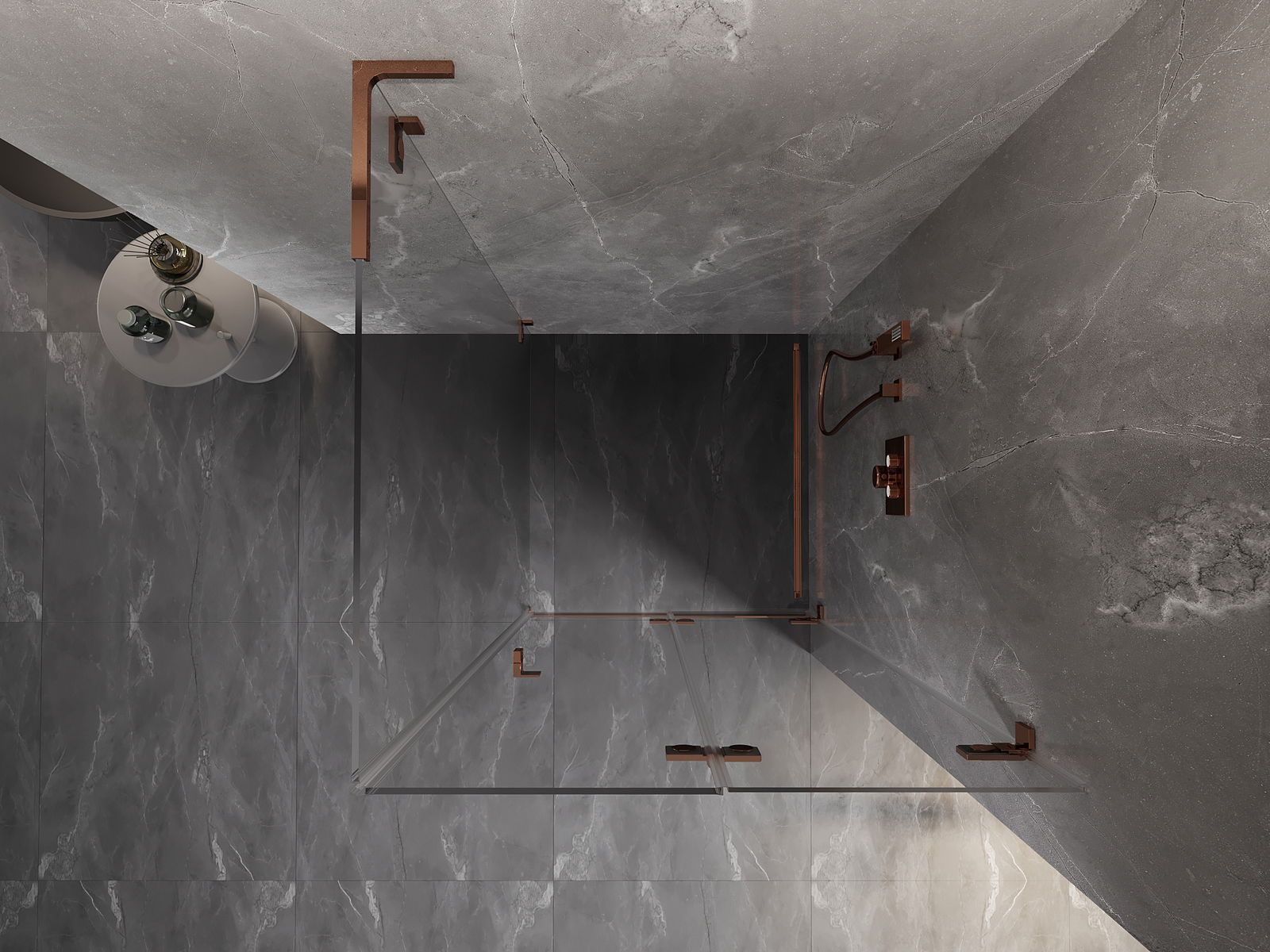 Mexen Lunar-F L vikbar duschkabin höger 100 x 100 cm, transparent, roséguld - 836L-100-100-60-00-P