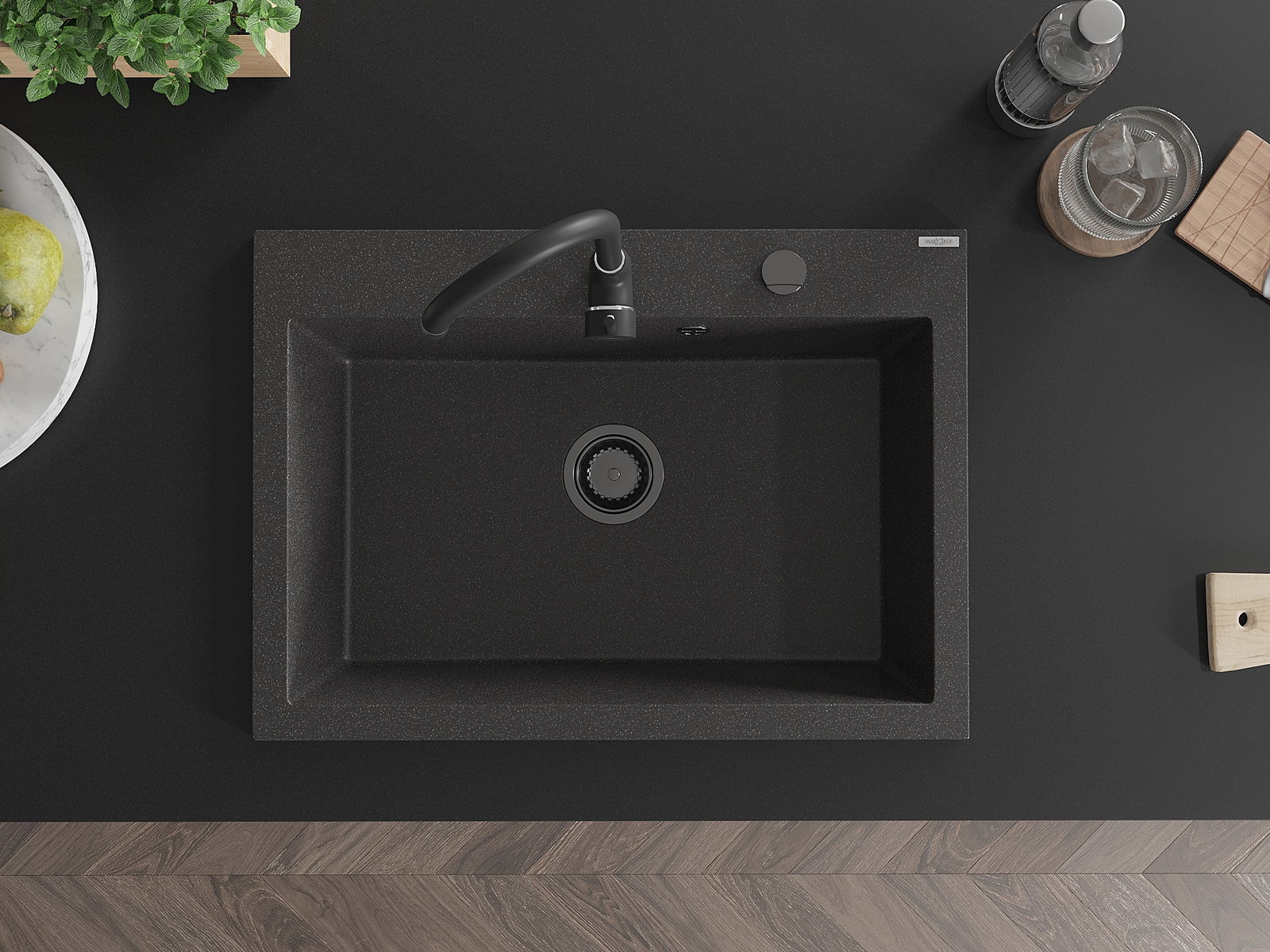 Mexen Elix granitdiskbänk med en ho 700 x 500 mm, svart fläckig, svart avloppsrör - 6526701005-76-B