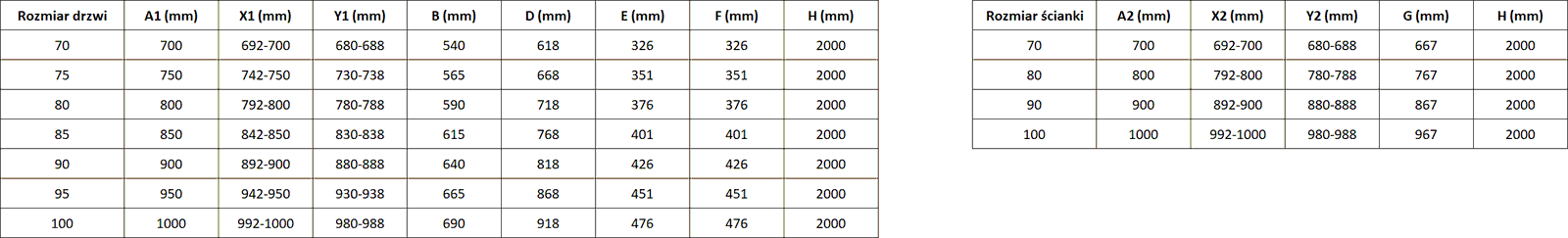 Glastjocklek: dörr 6 mm, vägg 8 mm