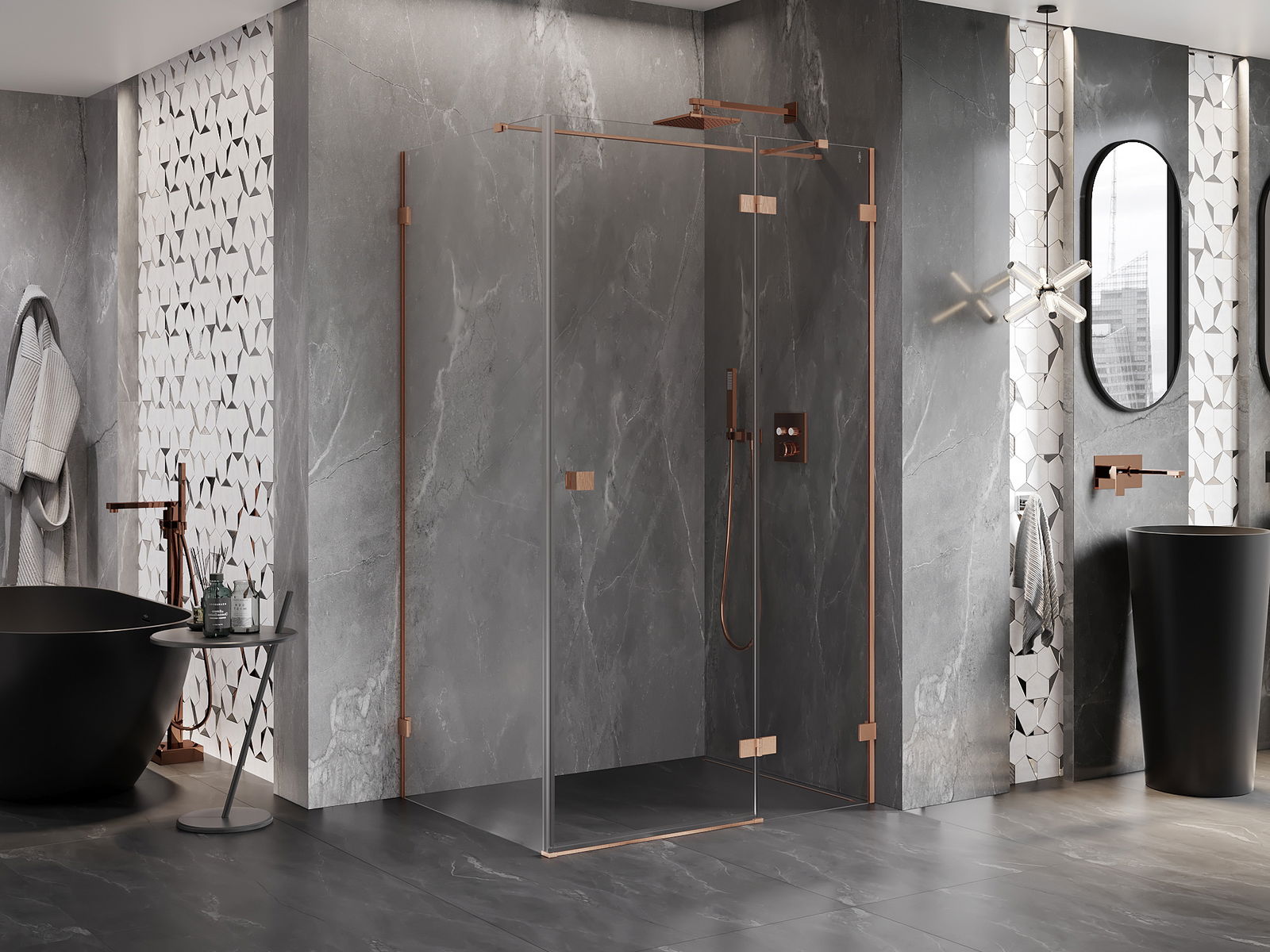 Klammor och gångjärn är gjorda av mycket hållbar mässing och bildar dessutom en inpassad glasruta. Det är ett utmärkt val som kombinerar elegans, hållbarhet och modern design. Tack vare sådana lösningar vinner duschen i estetik och underlättar samtidigt underhåll av renlighet.