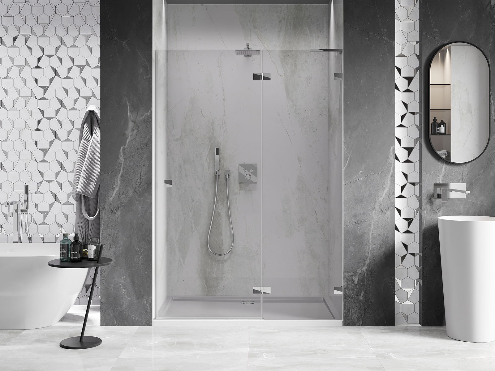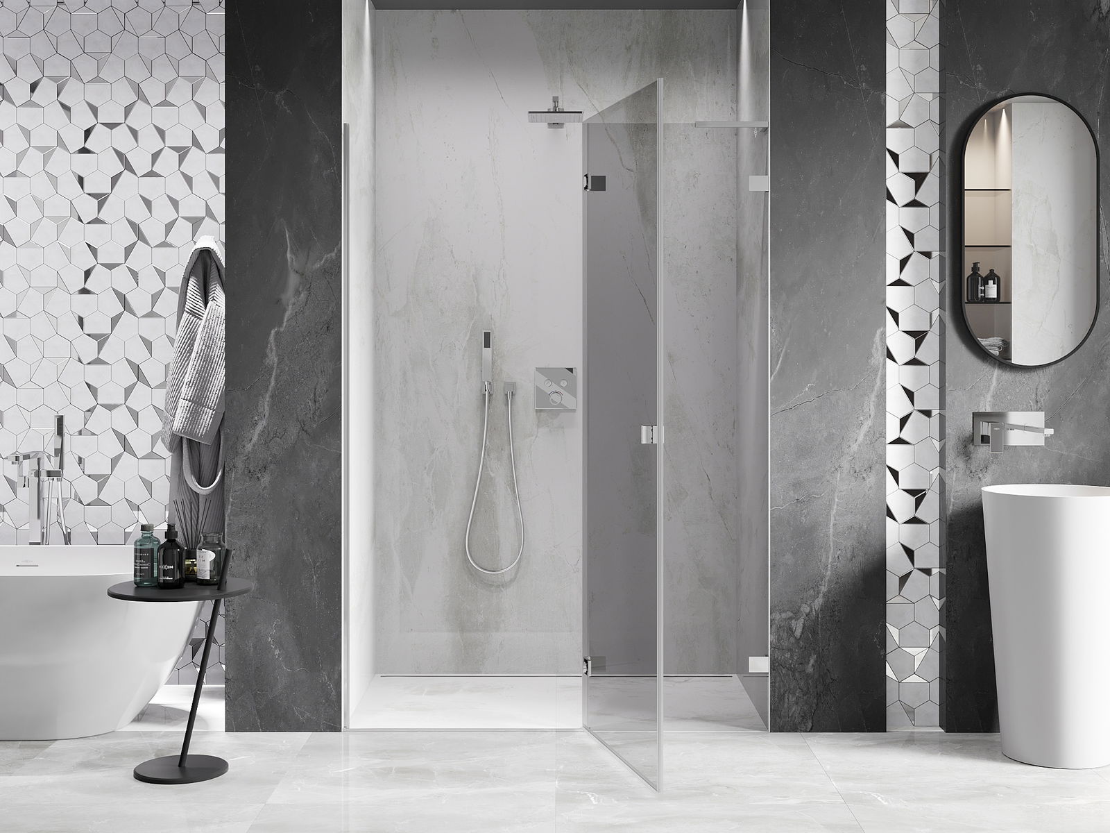 Klammor och gångjärn är gjorda av mycket hållbar mässing och bildar dessutom en inpassad glasruta. Det är ett utmärkt val som kombinerar elegans, hållbarhet och modern design. Tack vare sådana lösningar vinner duschen i estetik och underlättar samtidigt underhåll av renlighet.