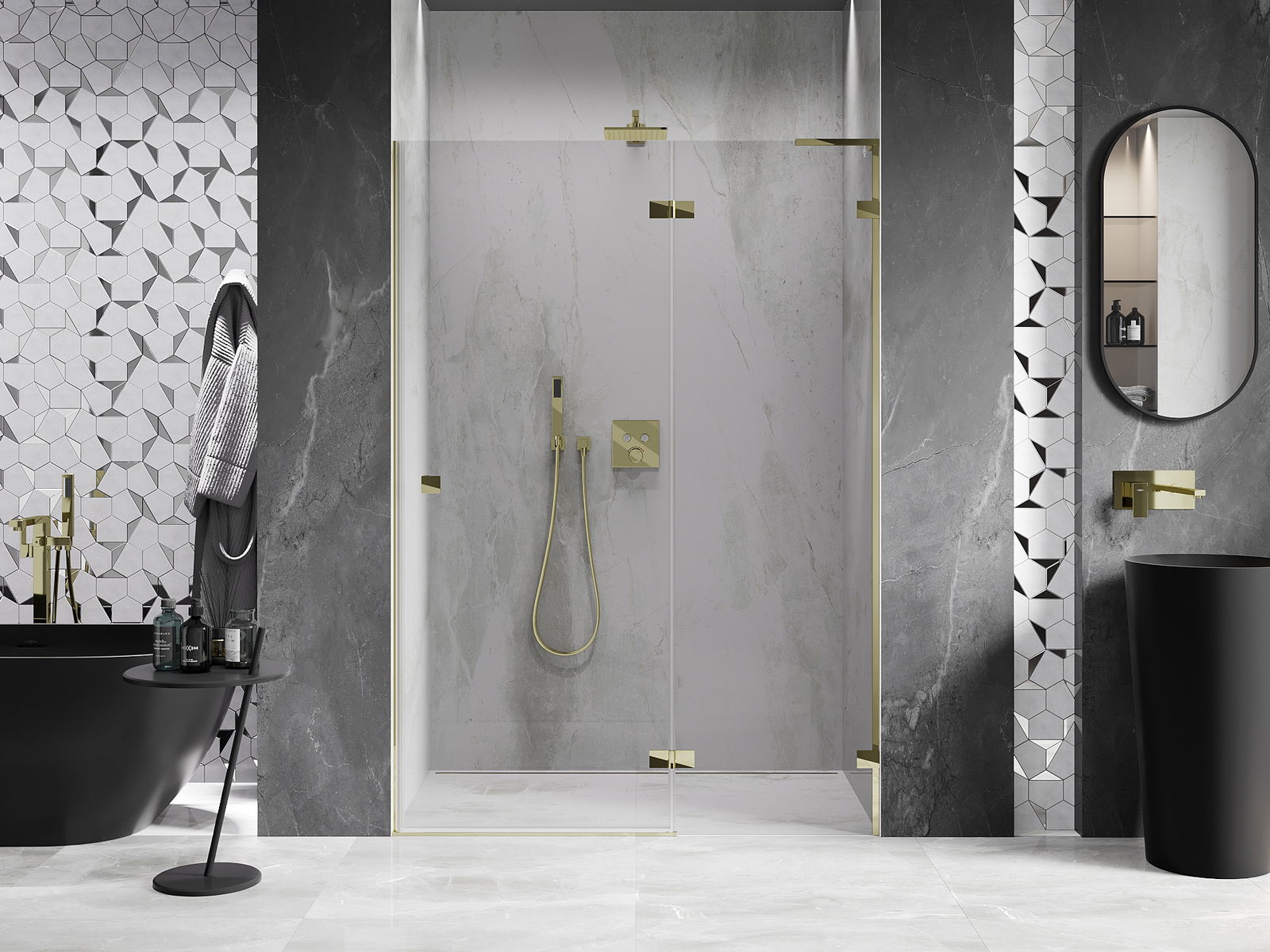 Mexen Lunar L svängbara duschdörrar höger 135 cm, transparent, guldfärgade - 834L-135-000-50-00-P
