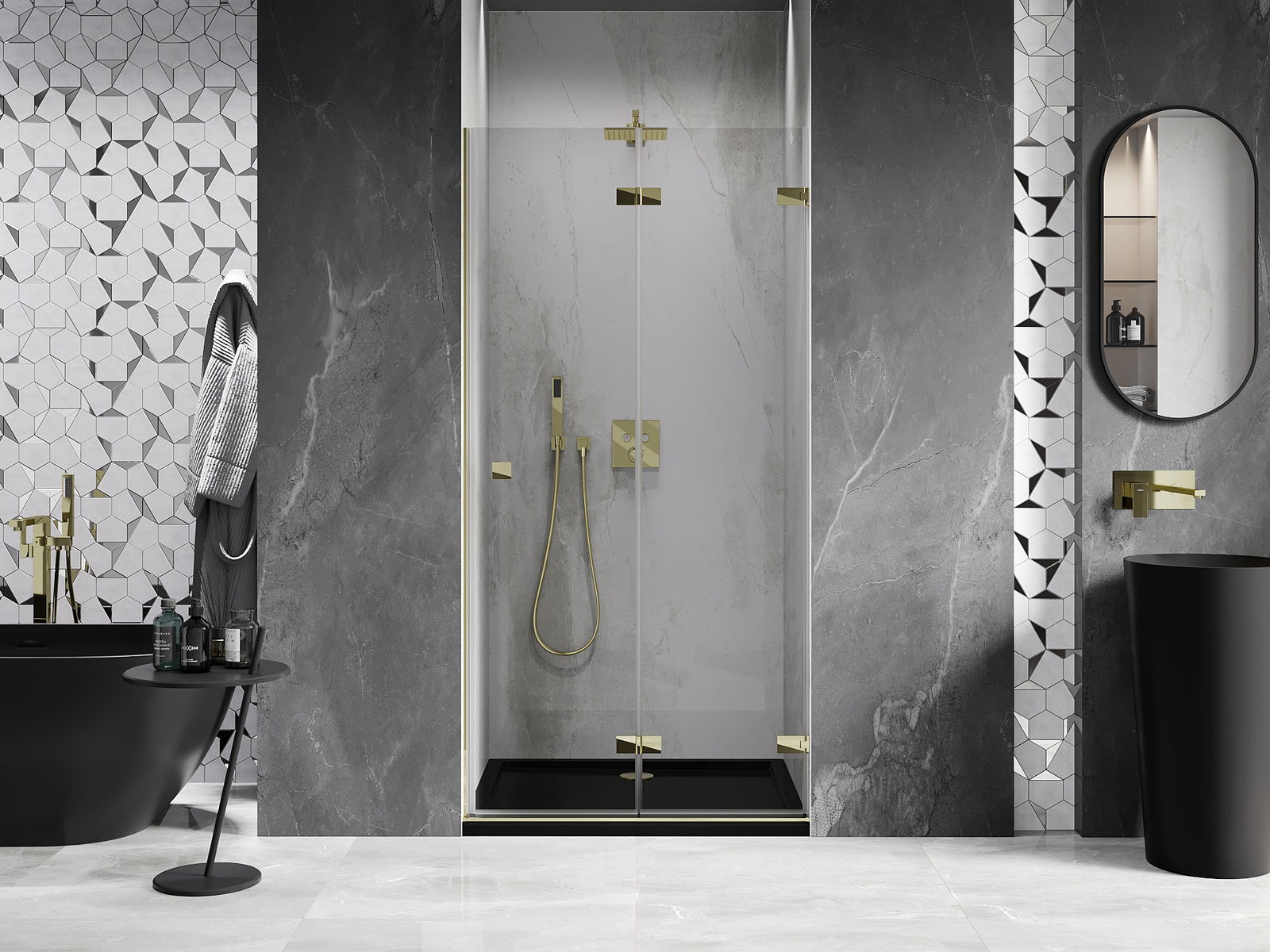 Mexen Lunar-F vikbara duschdörrar höger 70 cm, transparent, guld - 836-070-000-50-00-P