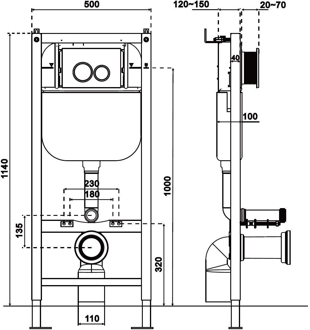 Möjligheten att justera ställningens höjd möjliggör bättre anpassning till olika tekniska förhållanden i badrummet. Det flexibla justeringsintervallet garanterar bekväm montering och ger optimal ställningshöjd.
