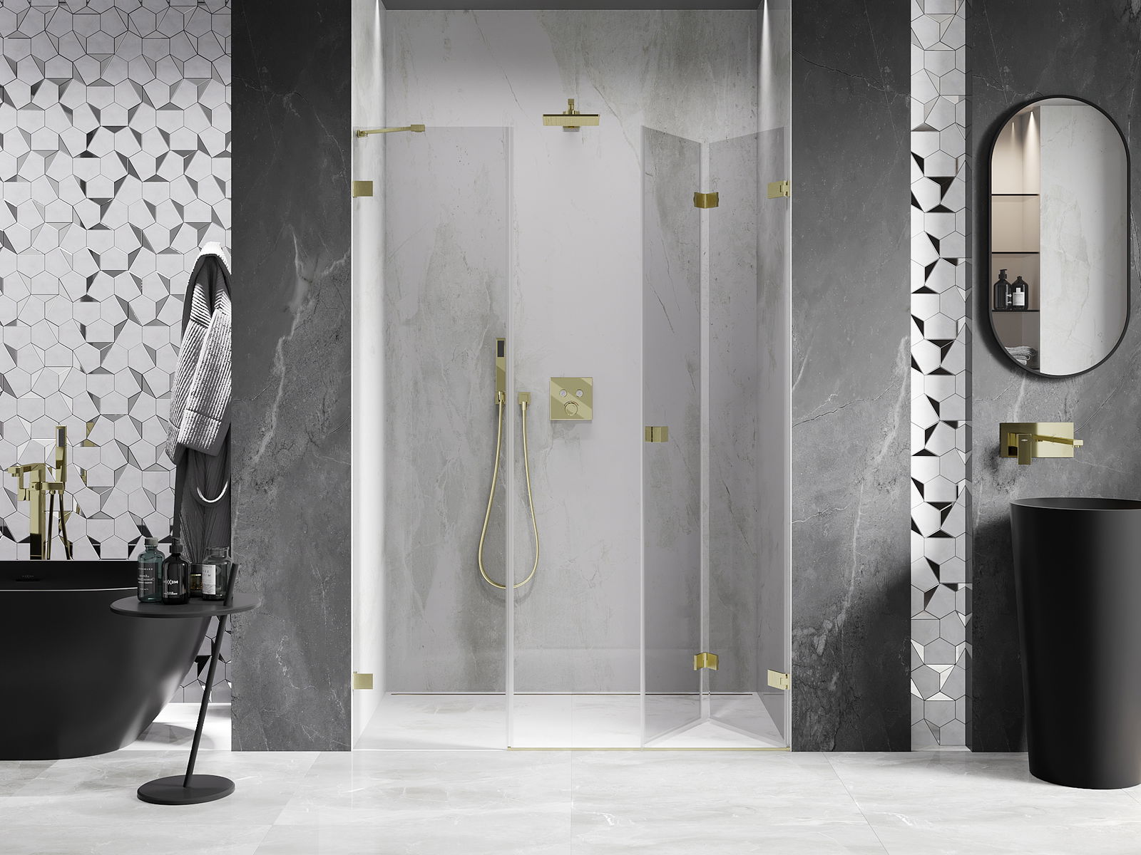 Mexen Lunar-F vikbara duschdörrar höger 135 cm, transparent, borstad guld - 836S-135-050-55-00-P