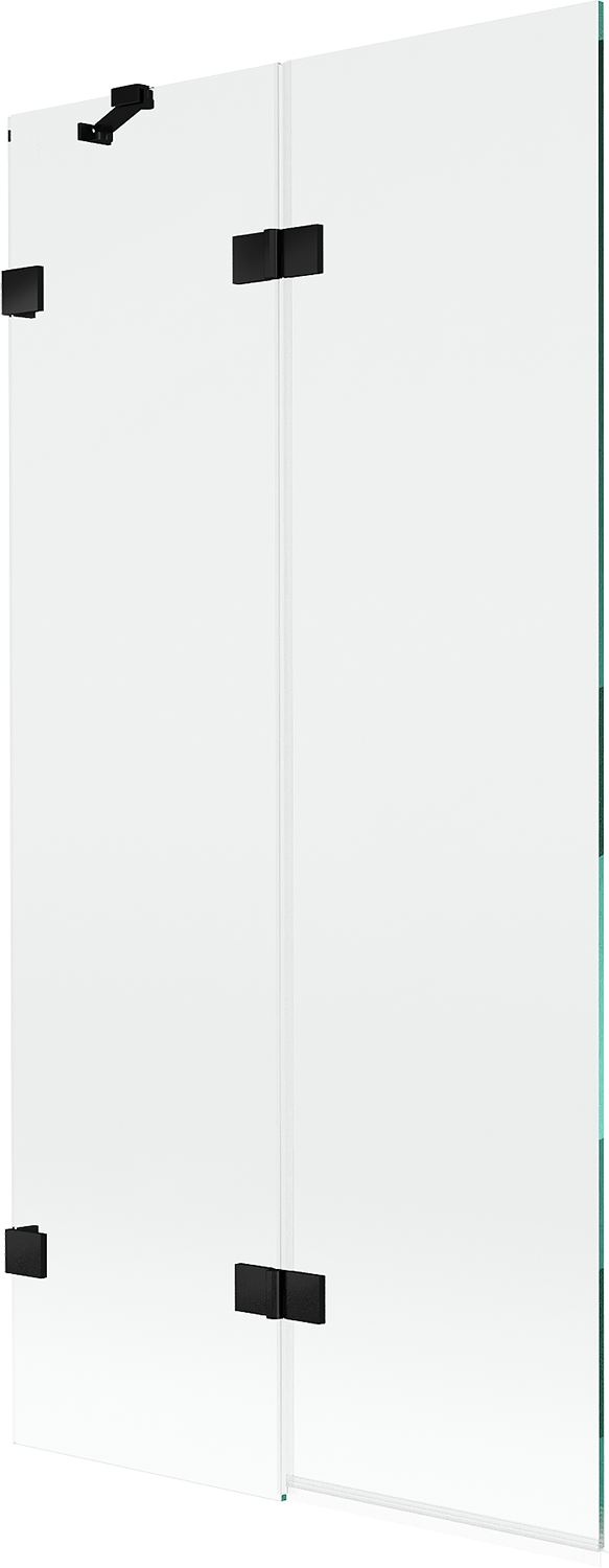 Skärmvägg tillverkad av två vingar med möjlighet att fällas ihop. En sådan lösning sparar mer utrymme i badrummet och möjliggör fri användning av det återstående utrymmet när vi inte använder badzonen.