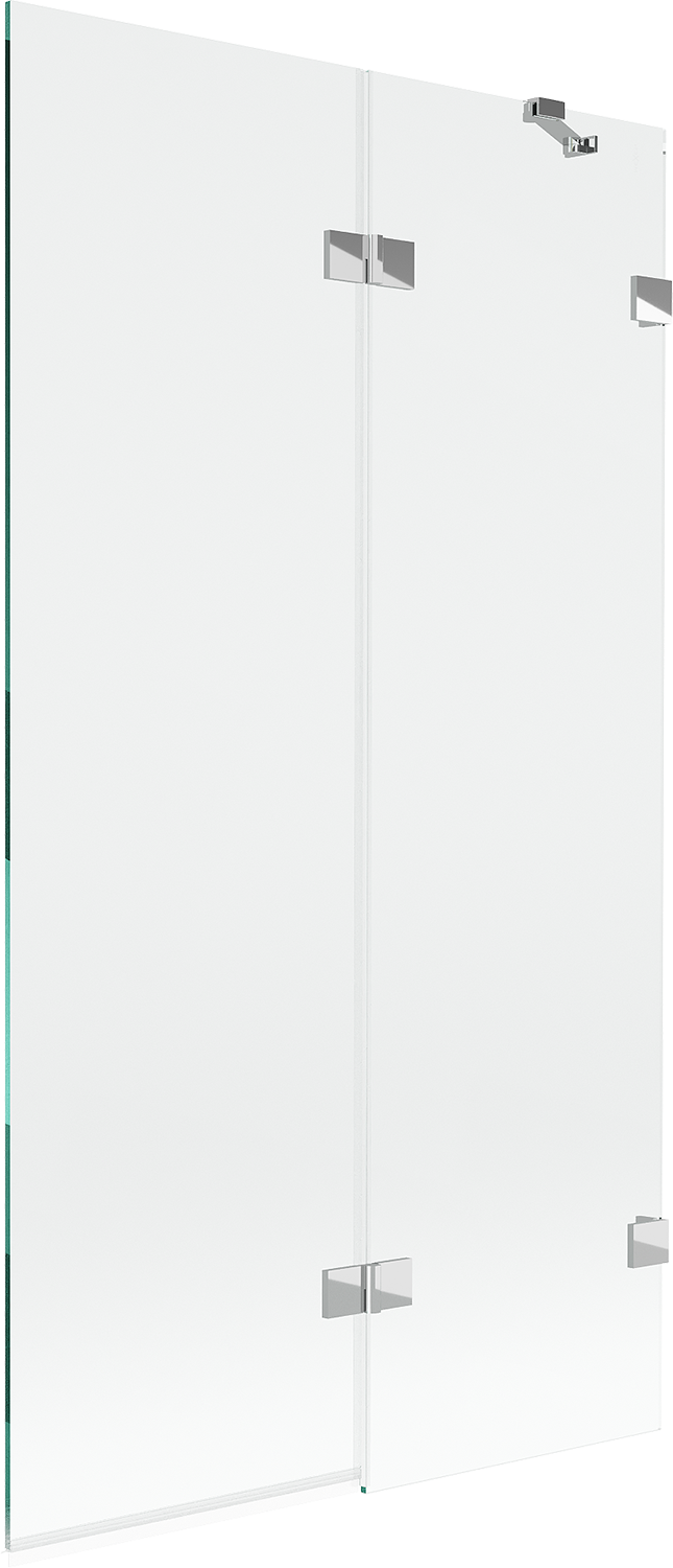 Skärmvägg tillverkad av två vingar med möjlighet att fällas ihop. En sådan lösning sparar mer utrymme i badrummet och möjliggör fri användning av det återstående utrymmet när vi inte använder badzonen.