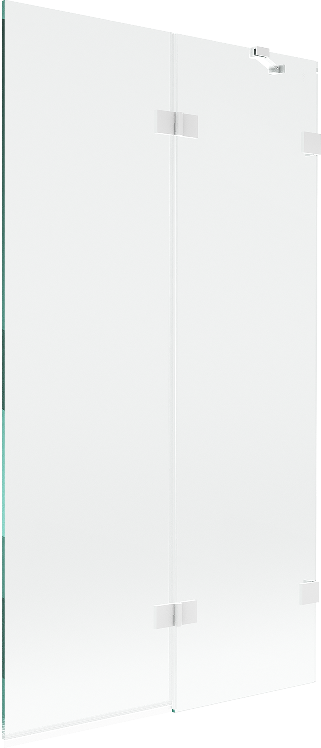 Skärmvägg tillverkad av två vingar med möjlighet att fällas ihop. En sådan lösning sparar mer utrymme i badrummet och möjliggör fri användning av det återstående utrymmet när vi inte använder badzonen.