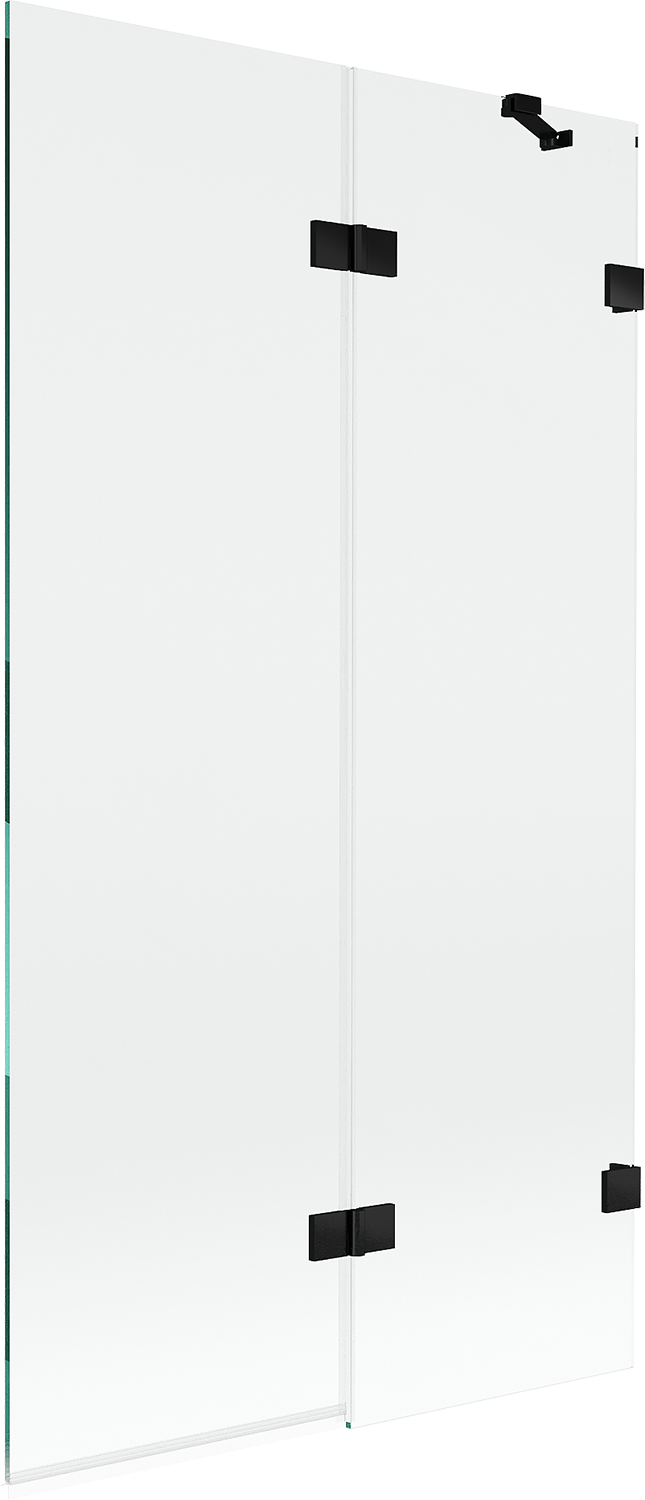 Skärmvägg tillverkad av två vingar med möjlighet att fällas ihop. En sådan lösning sparar mer utrymme i badrummet och möjliggör fri användning av det återstående utrymmet när vi inte använder badzonen.