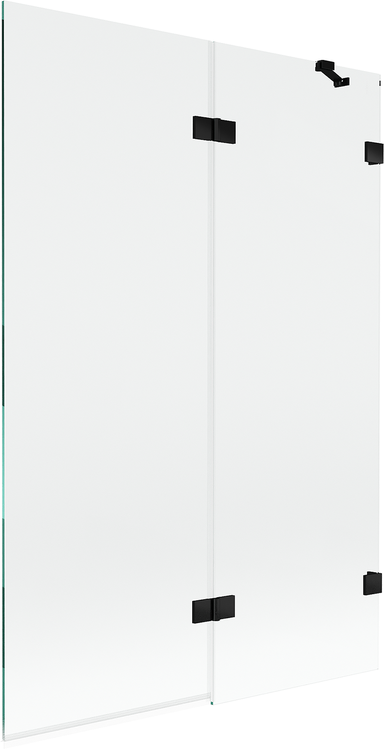 Skärmvägg tillverkad av två vingar med möjlighet att fällas ihop. En sådan lösning sparar mer utrymme i badrummet och möjliggör fri användning av det återstående utrymmet när vi inte använder badzonen.