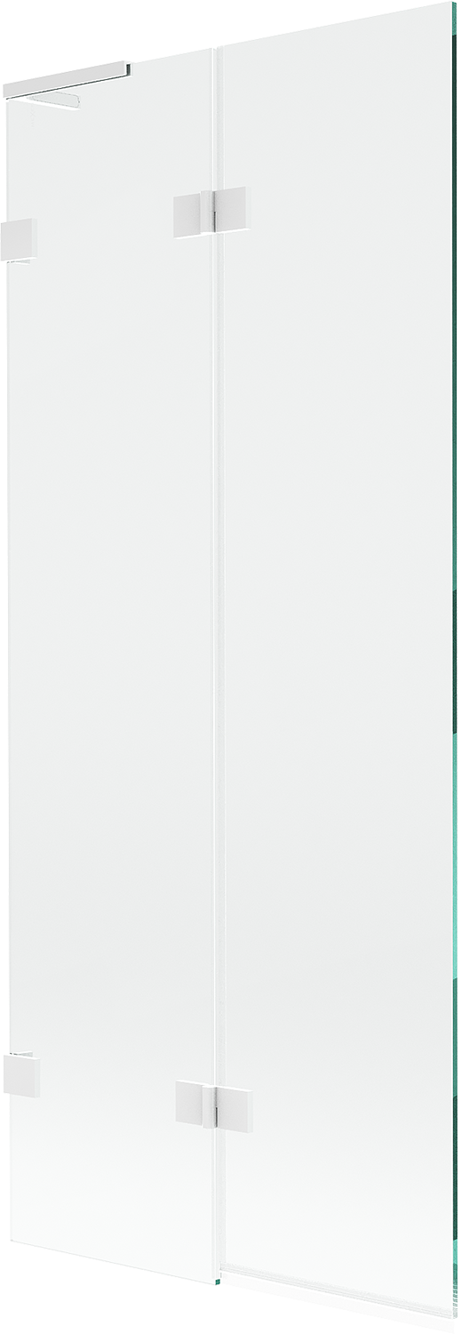 Skärmvägg tillverkad av två vingar med möjlighet att fällas ihop. En sådan lösning sparar mer utrymme i badrummet och möjliggör fri användning av det återstående utrymmet när vi inte använder badzonen.