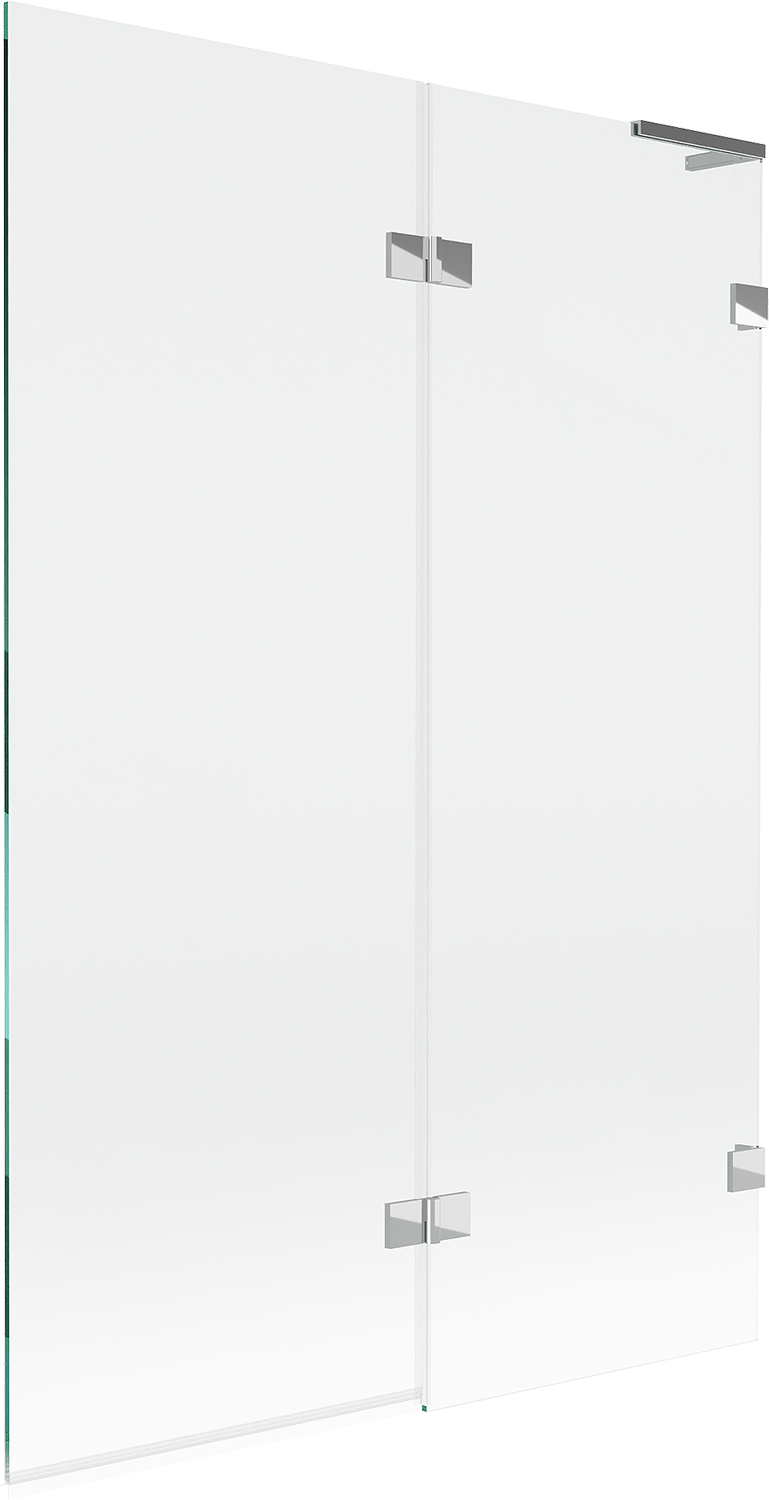 Skärmvägg tillverkad av två vingar med möjlighet att fällas ihop. En sådan lösning sparar mer utrymme i badrummet och möjliggör fri användning av det återstående utrymmet när vi inte använder badzonen.