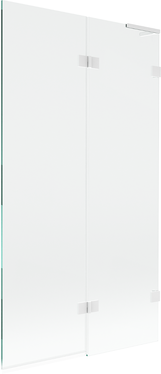Skärmvägg tillverkad av två vingar med möjlighet att fällas ihop. En sådan lösning sparar mer utrymme i badrummet och möjliggör fri användning av det återstående utrymmet när vi inte använder badzonen.