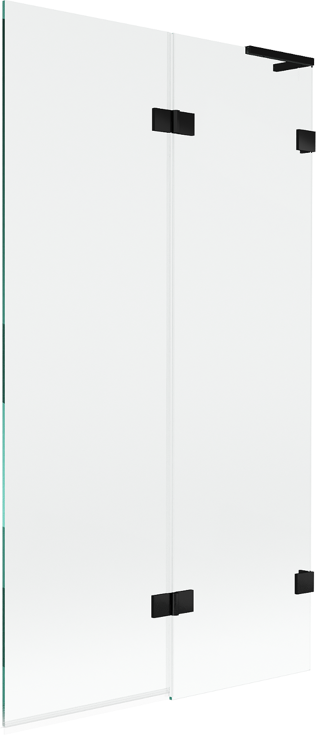 Skärmvägg tillverkad av två vingar med möjlighet att fällas ihop. En sådan lösning sparar mer utrymme i badrummet och möjliggör fri användning av det återstående utrymmet när vi inte använder badzonen.