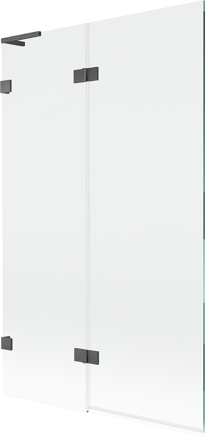 Skärmvägg tillverkad av två vingar med möjlighet att fällas ihop. En sådan lösning sparar mer utrymme i badrummet och möjliggör fri användning av det återstående utrymmet när vi inte använder badzonen.