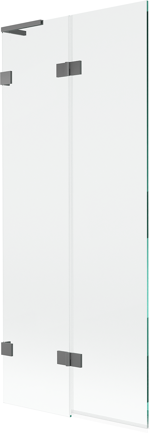 Skärmvägg tillverkad av två vingar med möjlighet att fällas ihop. En sådan lösning sparar mer utrymme i badrummet och möjliggör fri användning av det återstående utrymmet när vi inte använder badzonen.